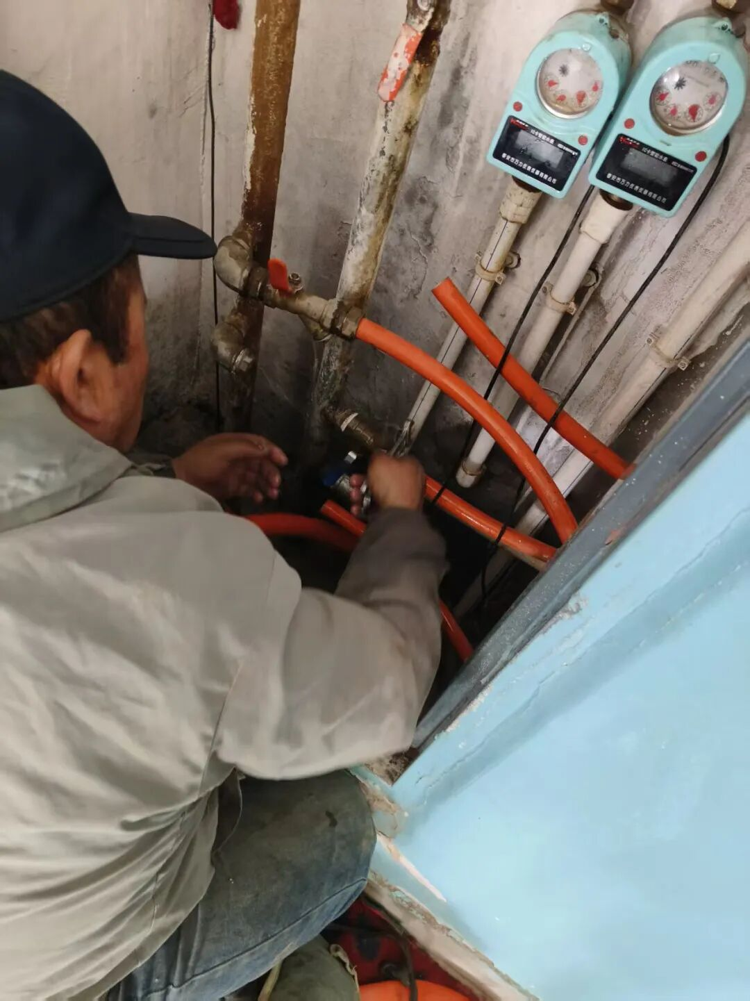 ▲图为为群众维修暖气管道。