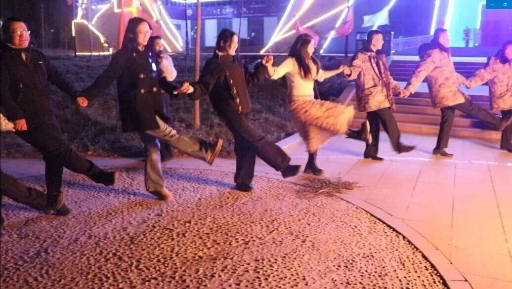 夜幕降临后,活动氛围持续升温,青年们尽情展现自我风采。随后篝火晚会环节,橘红色的火焰照亮夜空,青年们手拉手翩翩起舞,青春的活力与真挚的笑容在此刻定格。