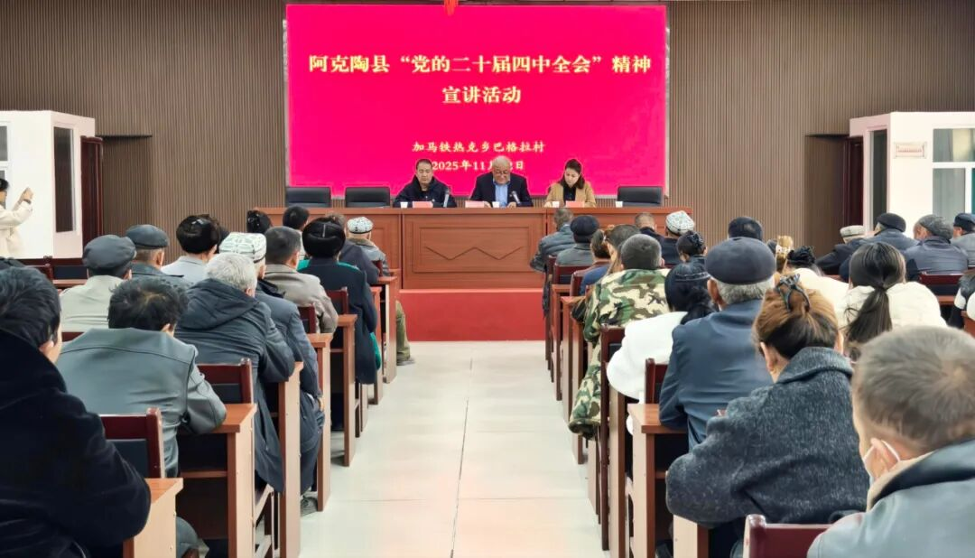 为推动党的创新理论在基层落地生根,引导各族干部群众坚定信念、勇担使命,阿克陶县以认真学习宣传贯彻党的二十届四中全会精神为重点,扎实开展多形式、全覆盖的宣传宣讲活动。