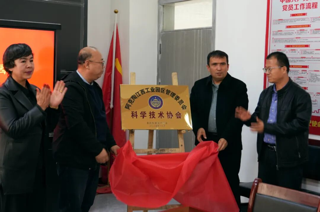 ▲图为阿克陶江西工业园区科学技术协会成立揭牌仪式。全媒体记者阿依妮萨罕·麦麦提吾西尔摄