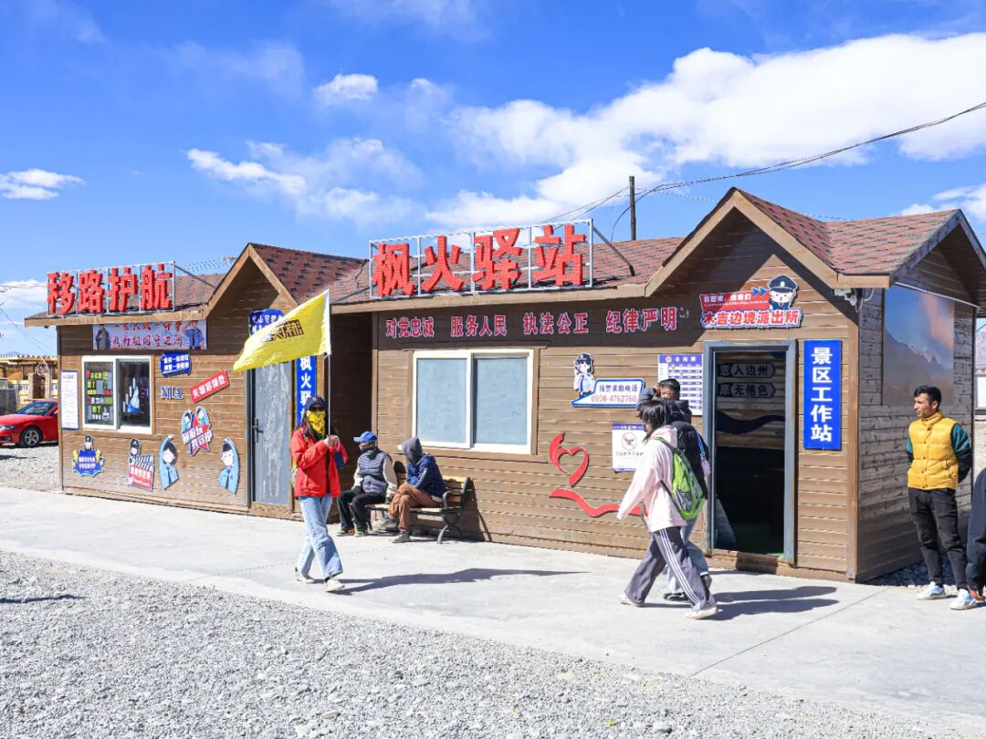 木吉边境派出所扼守着中塔两国长约148公里的边境线。为更好地服务克州文旅314国道沿线的边境旅游规划,助力区域经济提质增效,全所民警齐心协力,于今年10月初建成了这座“枫火驿站”,守护中外游客能够安心游玩。