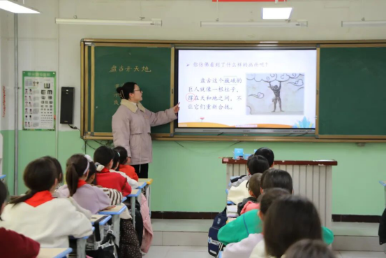 ▲图为范佳月在课堂上为孩子们讲《盘古开天地》。全媒体记者阿依妮萨罕·麦麦提吾西尔摄