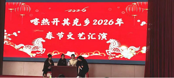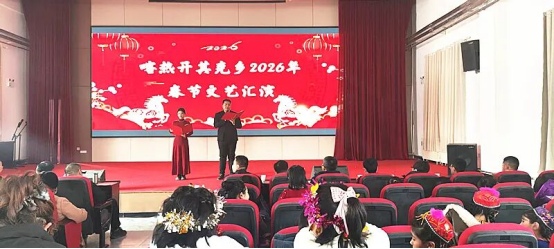 为不断丰富群众精神文化生活,营造欢乐祥和、团结奋进的节日氛围,2月12日,喀热开其克乡张灯结彩、喜气洋洋,处处洋溢着新春的喜庆与祥和。各族干部群众欢聚一堂,举办2026年春节文艺演出,以一场精彩纷呈的文化盛宴共贺新春、共话发展。