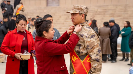 随着2026年春季入伍新兵名单宣读完毕,县委常委、县人武部部长曾斌,县委常委托合提霍加·要力达西等为入伍新兵们佩戴大红花,并向支持国防建设的新兵家属致以崇高敬意。