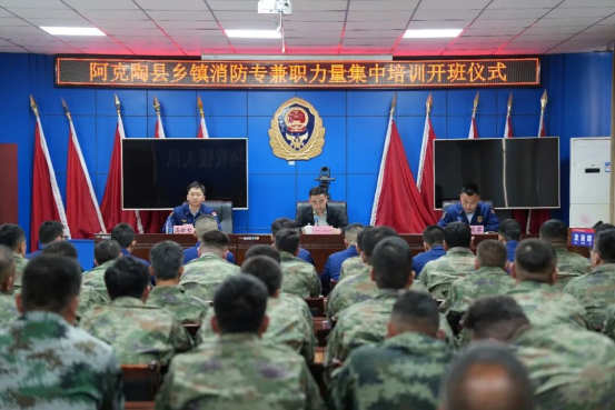 ▲图为阿克陶县乡镇消防专兼职力量集中培训班开班仪式现场。