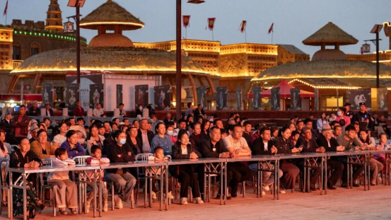 《十二木卡姆片段》精彩亮相,古老的木卡姆艺术历久弥新,在舞台上焕发全新生机,彰显了非遗文化的传承与活力。麦西来普环节,全场观众不分你我、一同载歌载舞,台上台下连成一片欢乐的海洋,欢声笑语响彻古城的夜空。