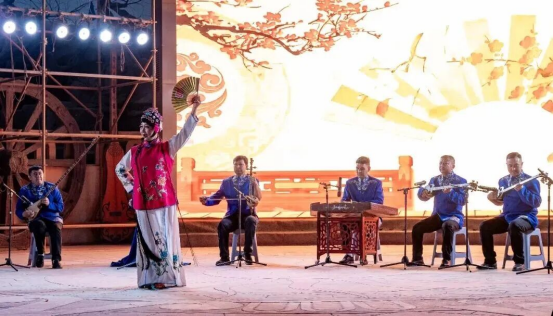 演出在喜庆热闹的开场舞《欢天喜地》中拉开帷幕,欢快的节奏、灵动的舞姿瞬间点燃全场热情,随后,二重唱《昆天之恋》深情开唱,悠扬婉转的旋律诉说着对家园与故土的眷恋;传统戏曲《卖水》韵味悠长,字正腔圆的唱腔,让大家近距离感受中华优秀传统文化的独特魅力,赢得阵阵掌声。