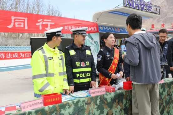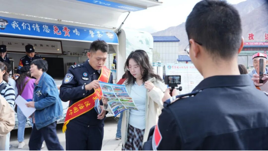 民警迪拉热·克力木在现场介绍道:“盖孜边境检查站是进入帕米尔高原的第一站,每天过往的旅客和车辆非常多,普法宣传很有必要。我们通过‘快闪’顺口溜、‘客车微课堂’和‘法治盲盒’等形式,让旅客在通行的间隙就能学到法律知识,真正让普法入脑入心。”