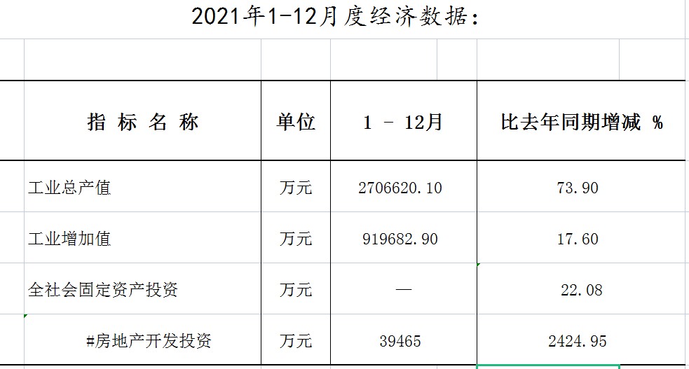 2021年1-12月度经济数据