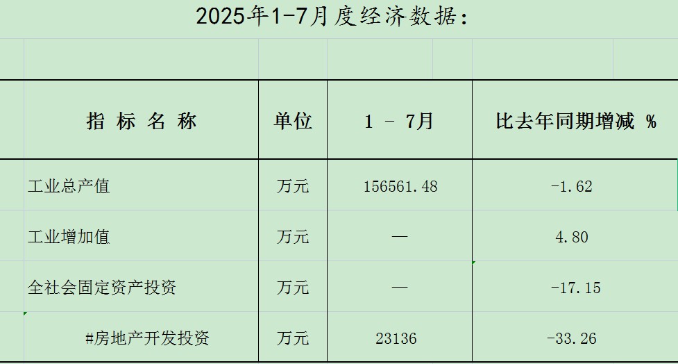 阿克陶县2025年1-7月度经济数据