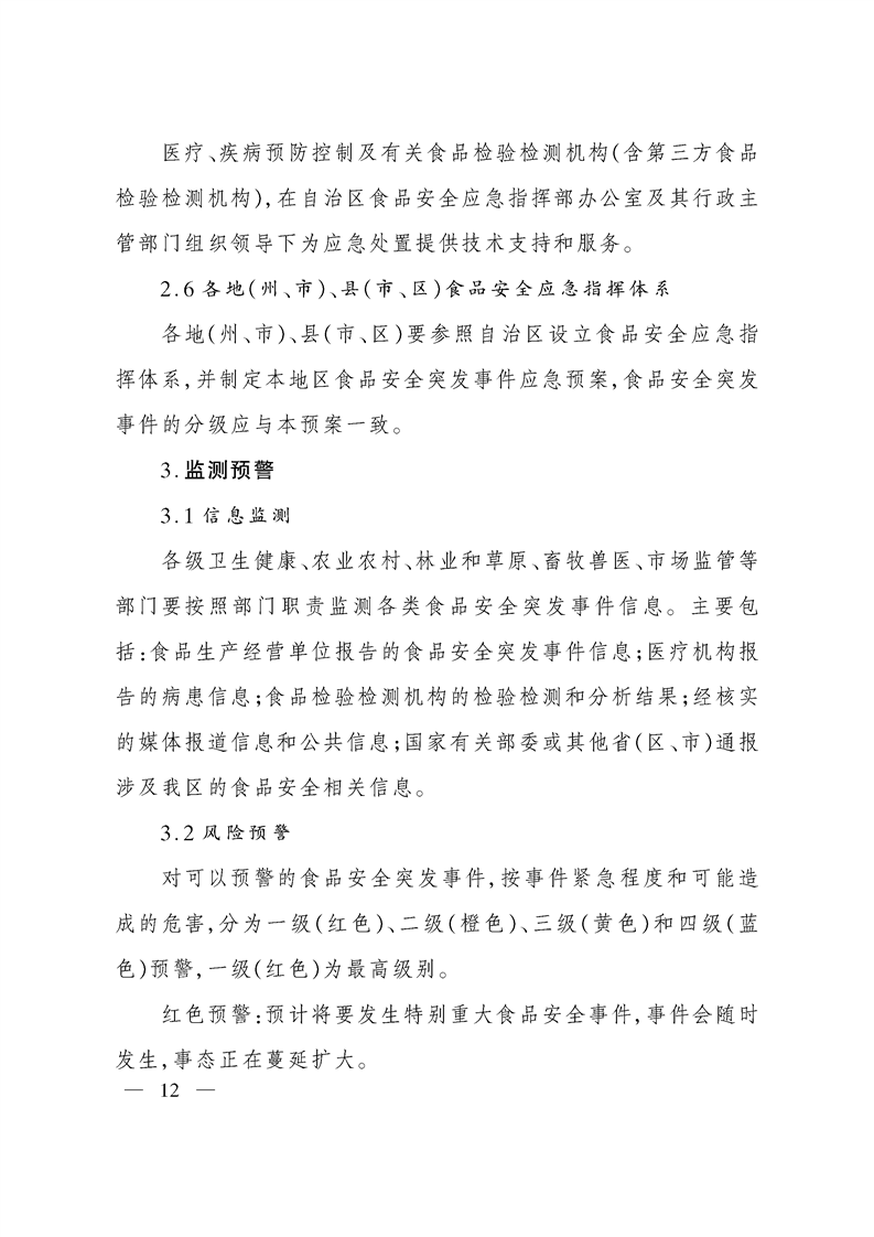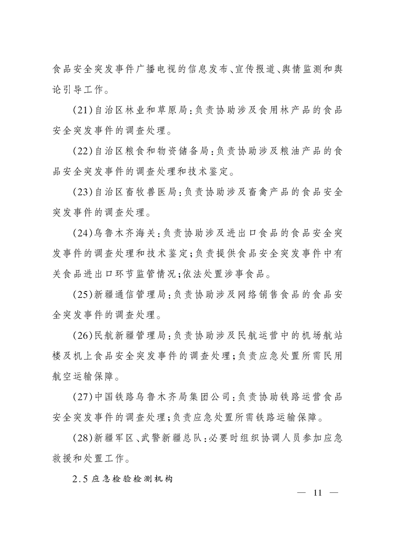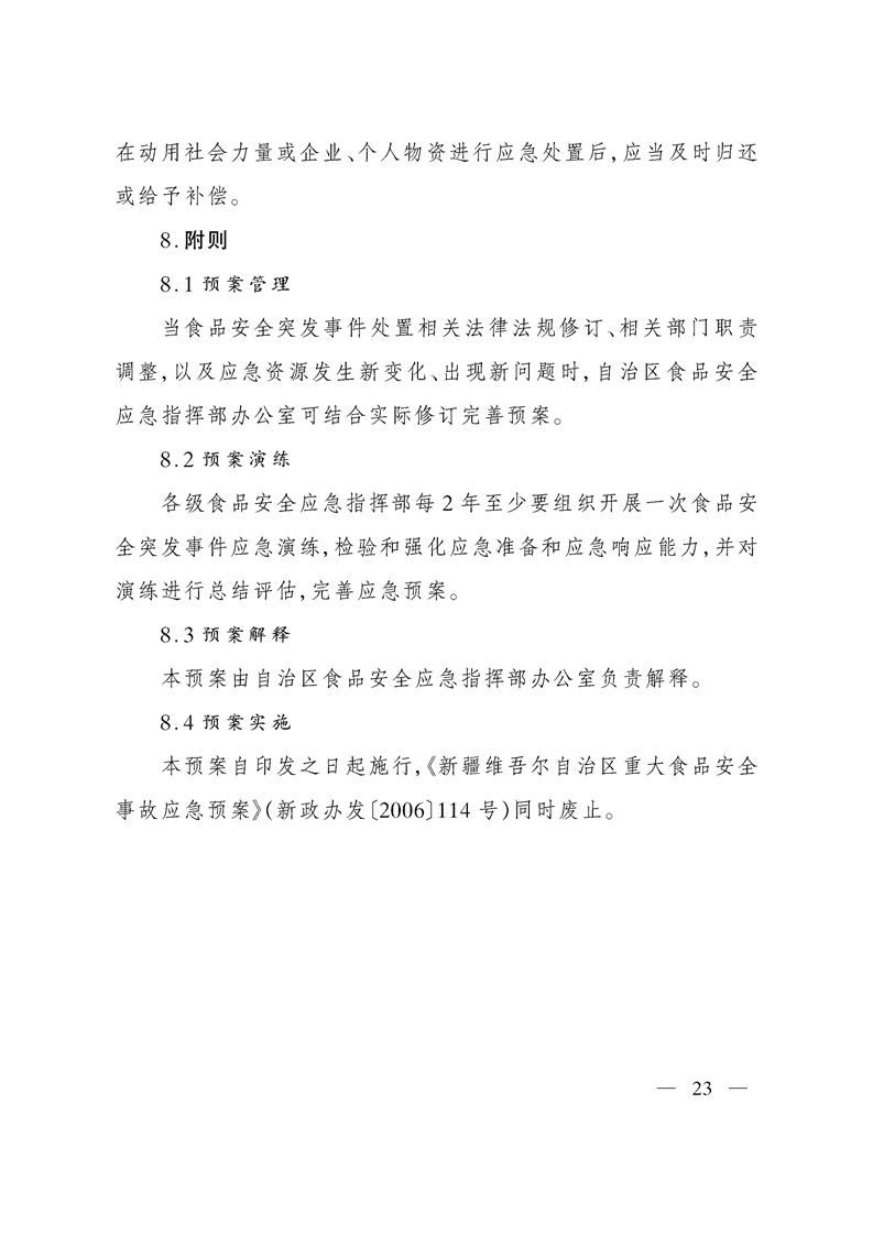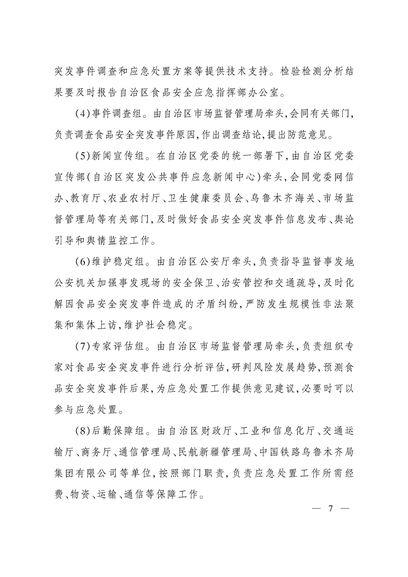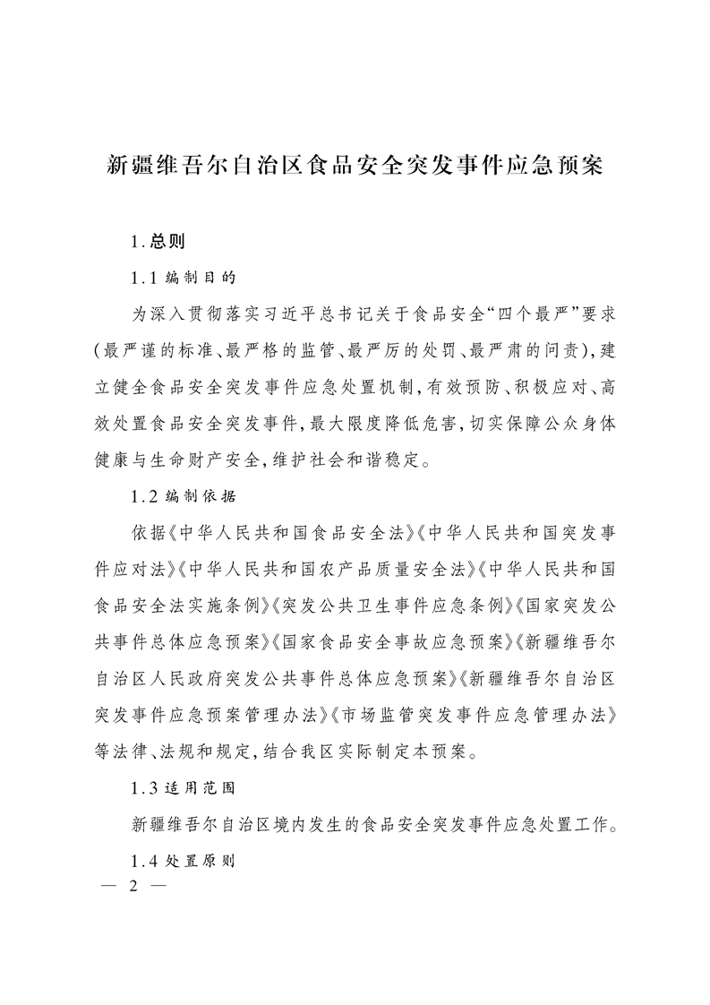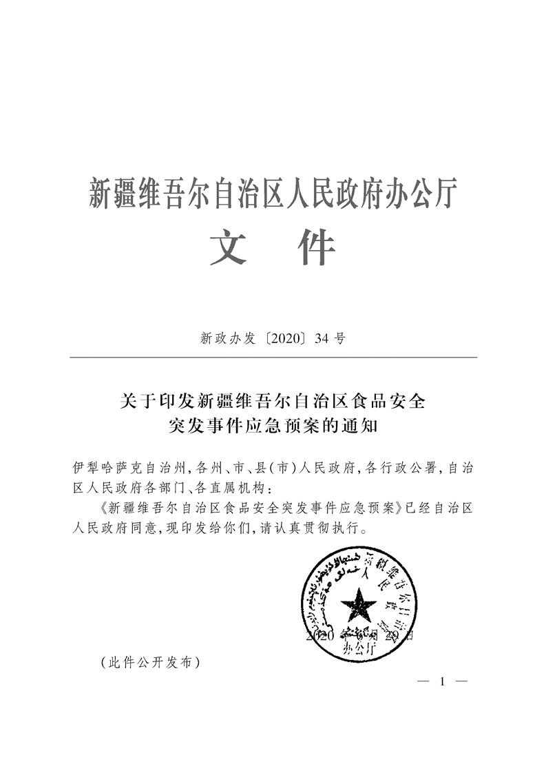 关于印发新疆维吾尔自治区食品安全突发事件应急预案的通知