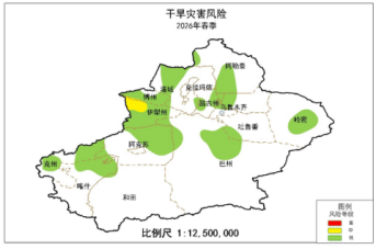 根据CMA-CPSv3模式产品,预计春季干旱灾害风险预警分布如图4,阿克陶县木吉乡部分区域干旱灾害风险等级为低风险,其余区域无风险。