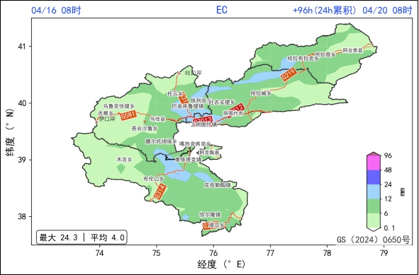 (四)G314线奥依塔克镇至布伦口乡路段降水明显,山区部分路段有道路结冰,局部区域伴有短时强降水、雷暴大风、冰雹等强对流天气,需防范混合型洪水和局地强降雨可能引发的山洪和地质灾害,建议交通管理及路政部门加强沿线安全管理,文旅部门提醒游客进山注意安全。