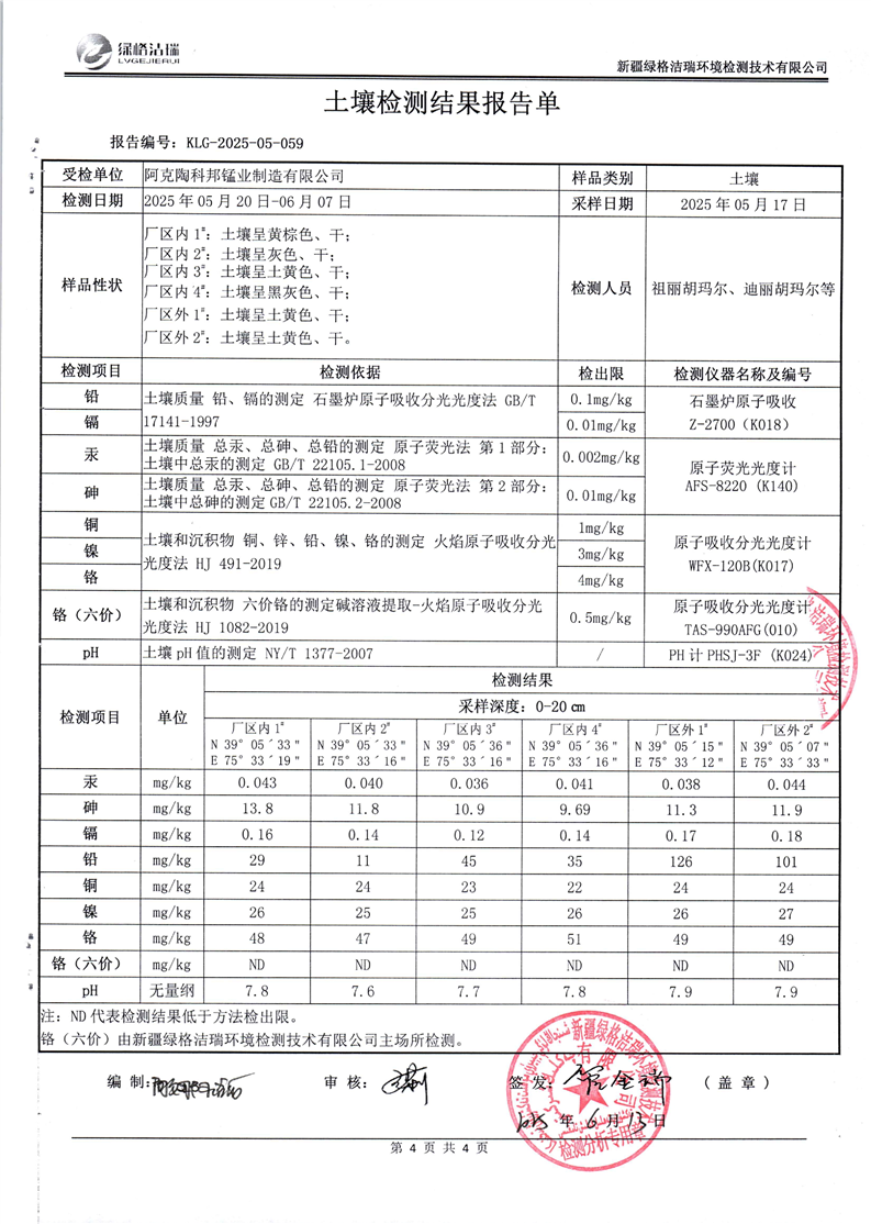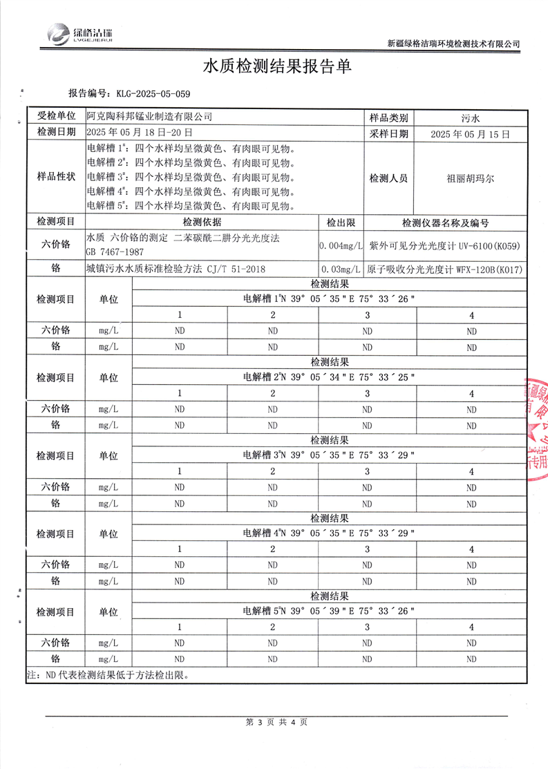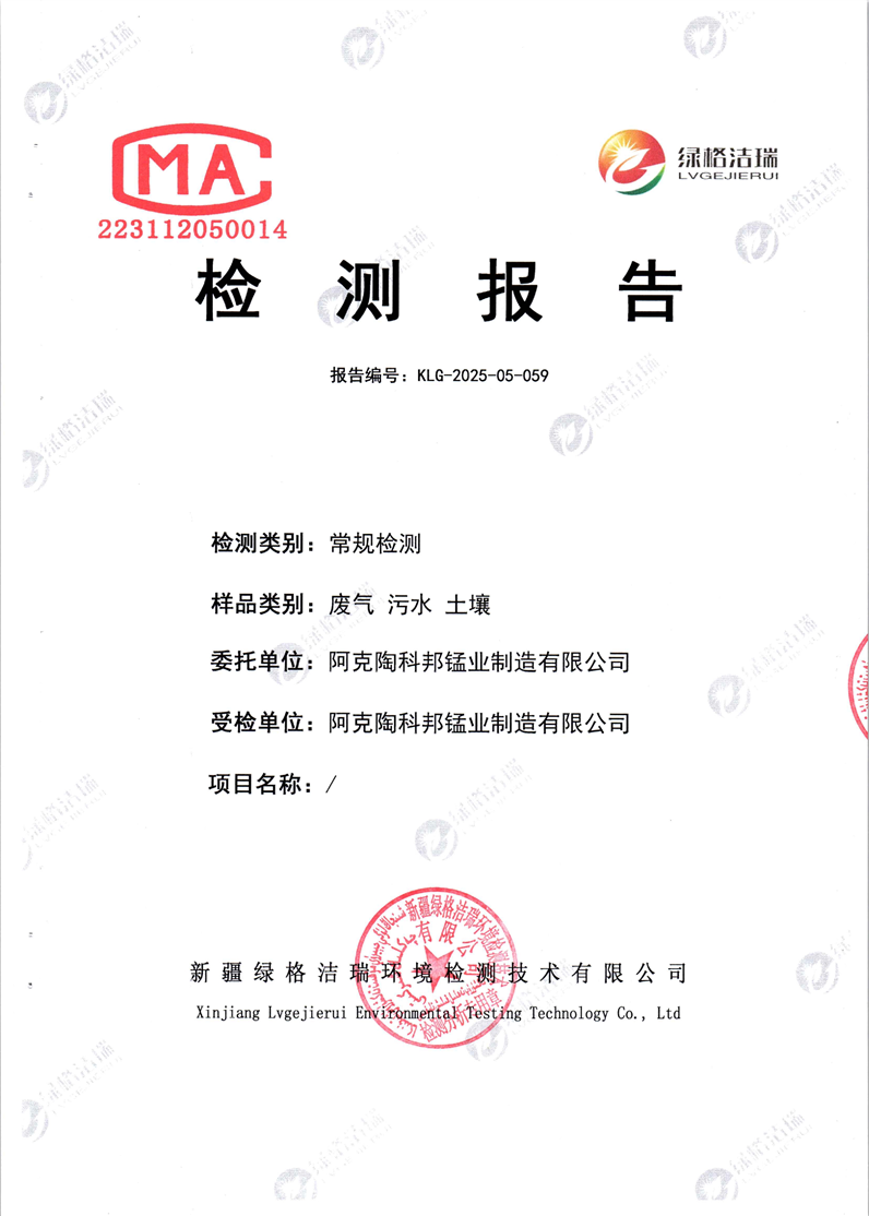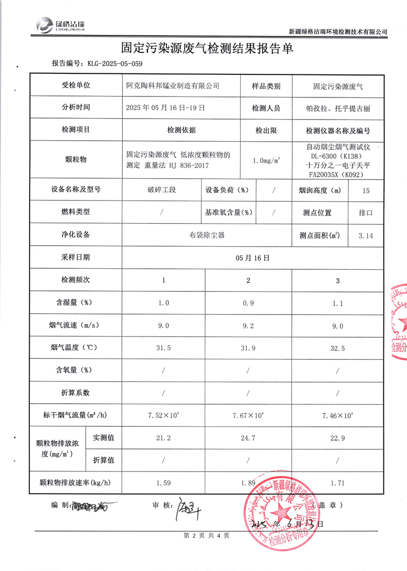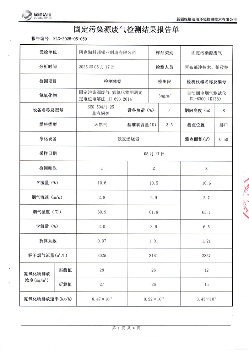 阿克陶科邦锰业制造有限公司2025年5月份污染源情况