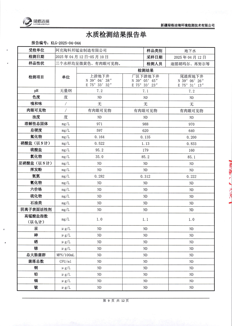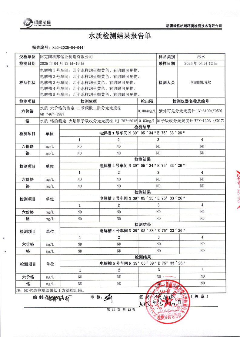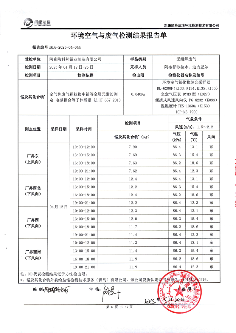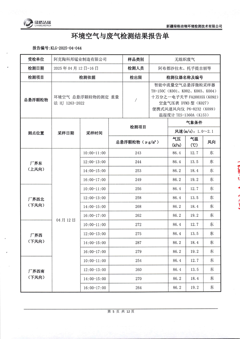 阿克陶科邦锰业制造有限公司2025年4月份污染源情况
