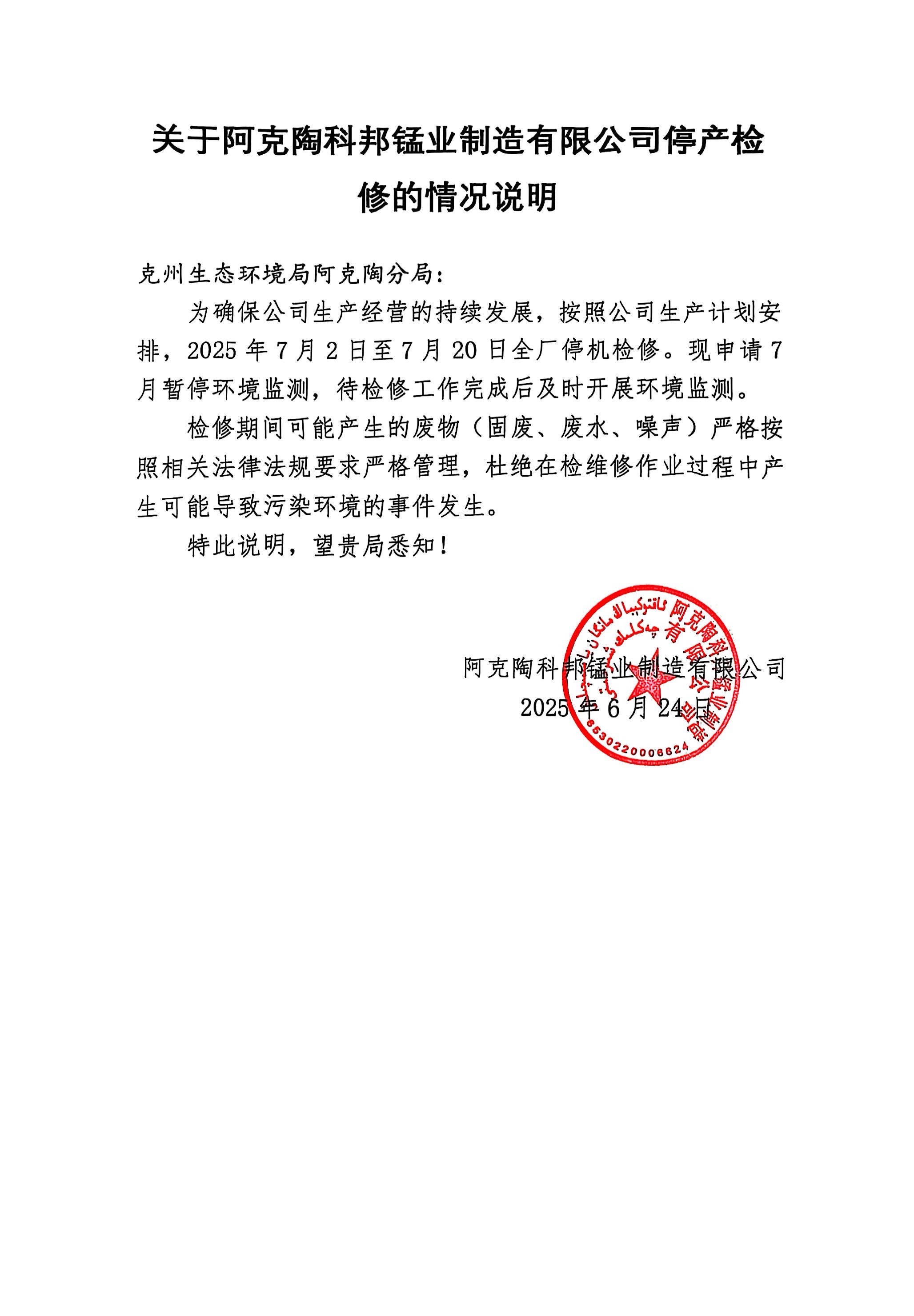 阿克陶科邦锰业制造有限公司2025年7月份污染源情况