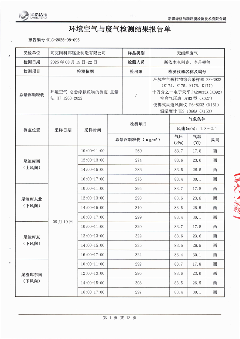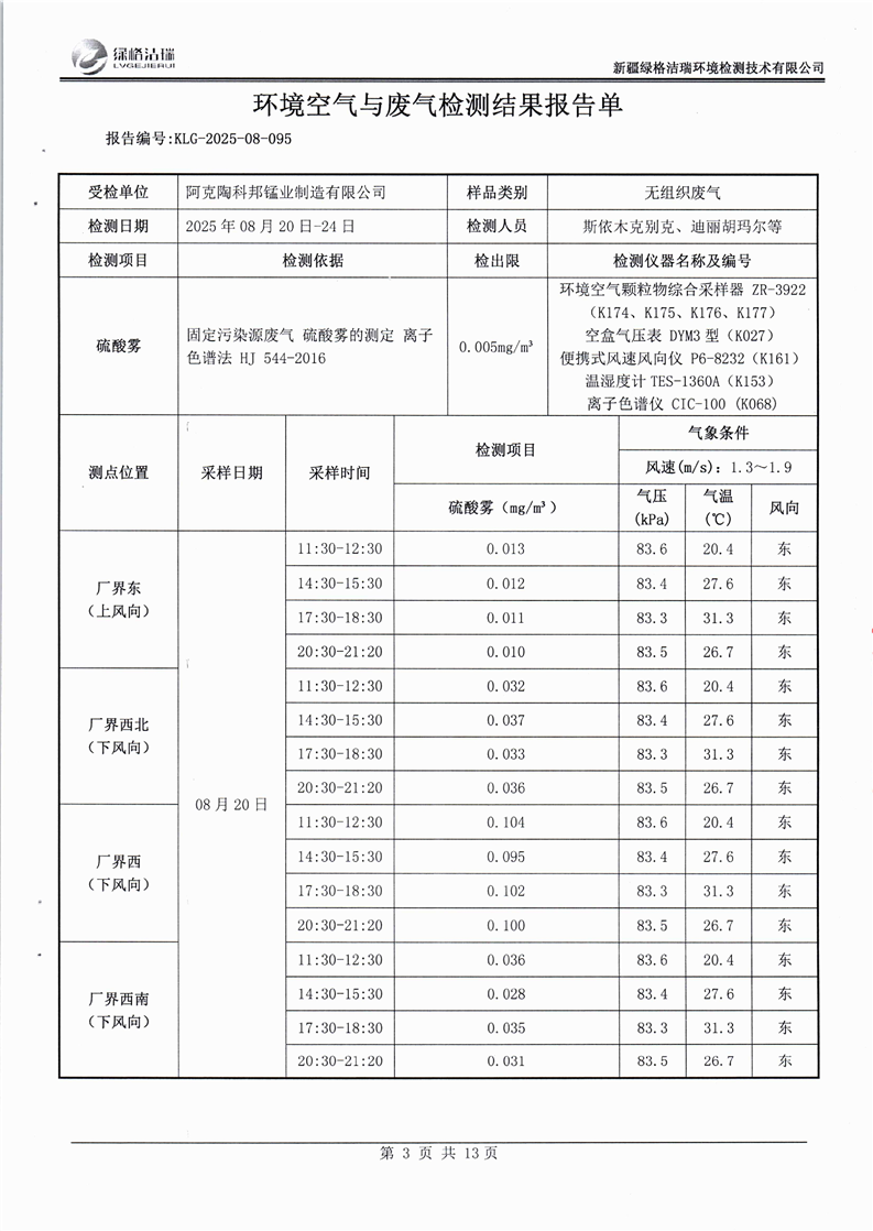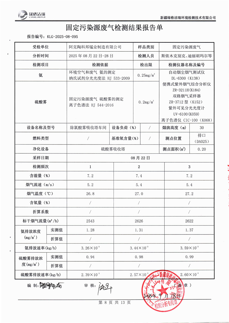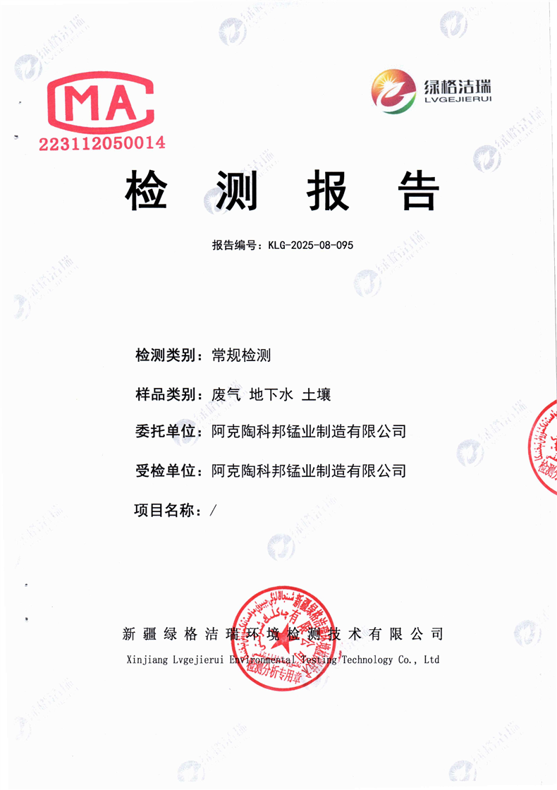科邦锰业环境检测2025年8月废气地下水土壤检测报告