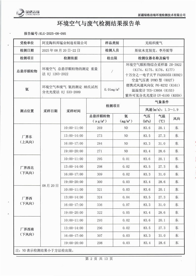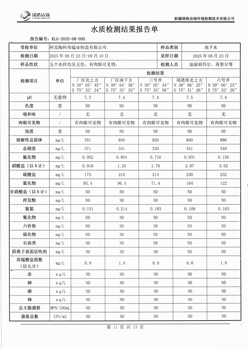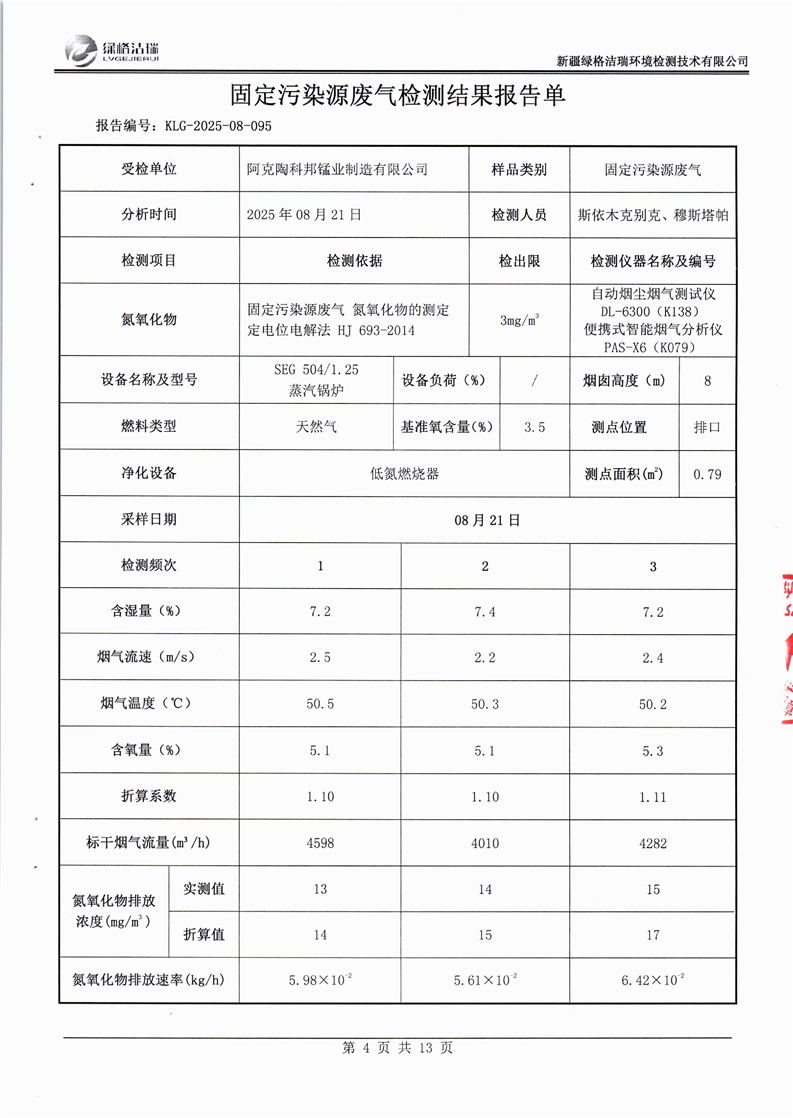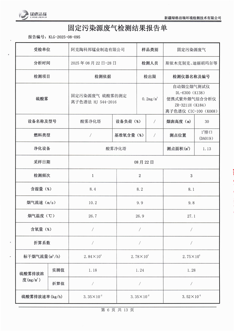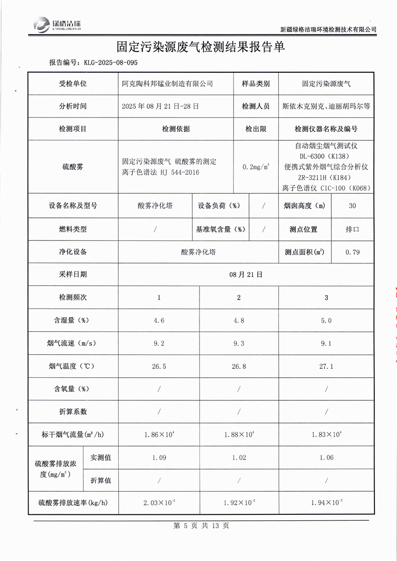 科邦锰业环境检测2025年8月废气地下水土壤检测报告