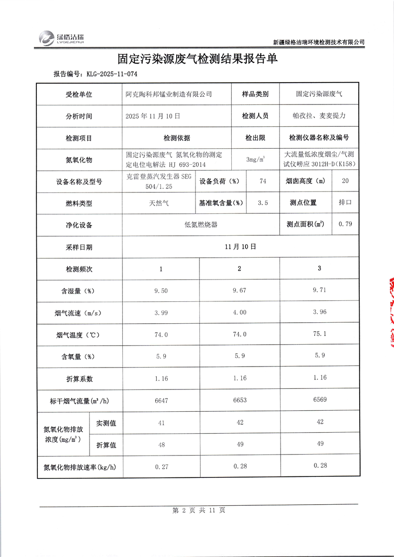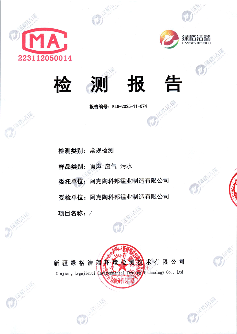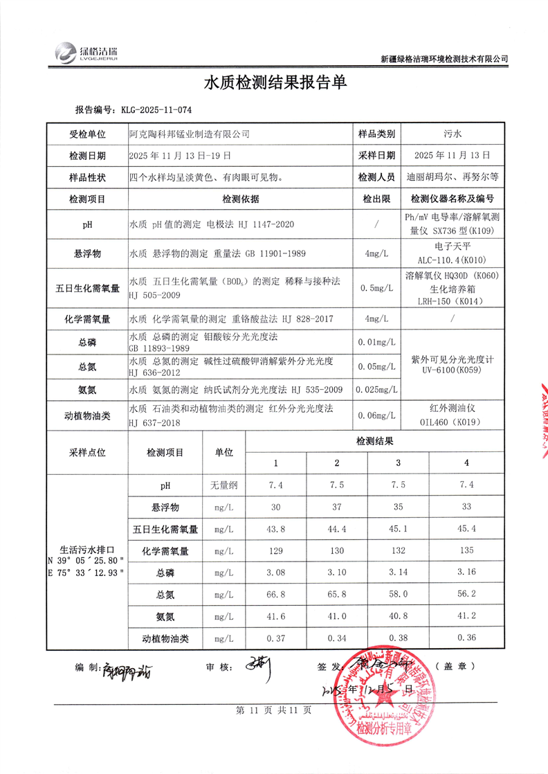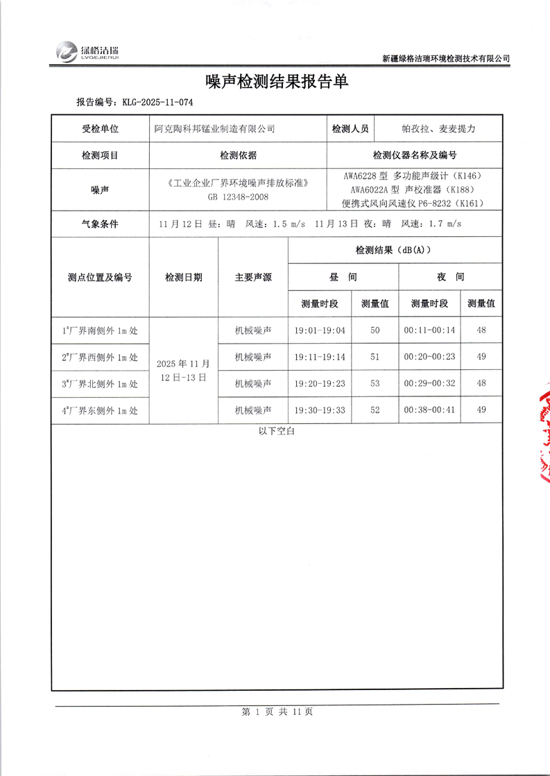 科邦锰业环境检测2025年11月污水噪声废气检测报告