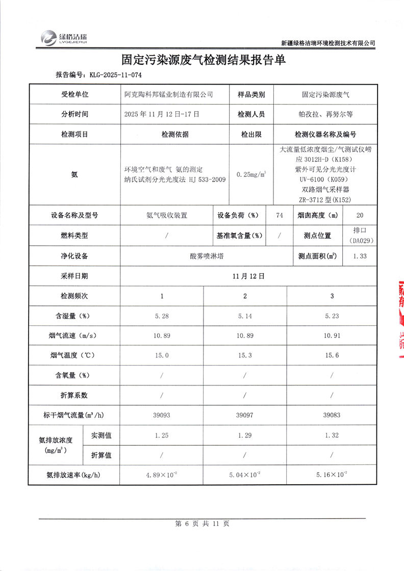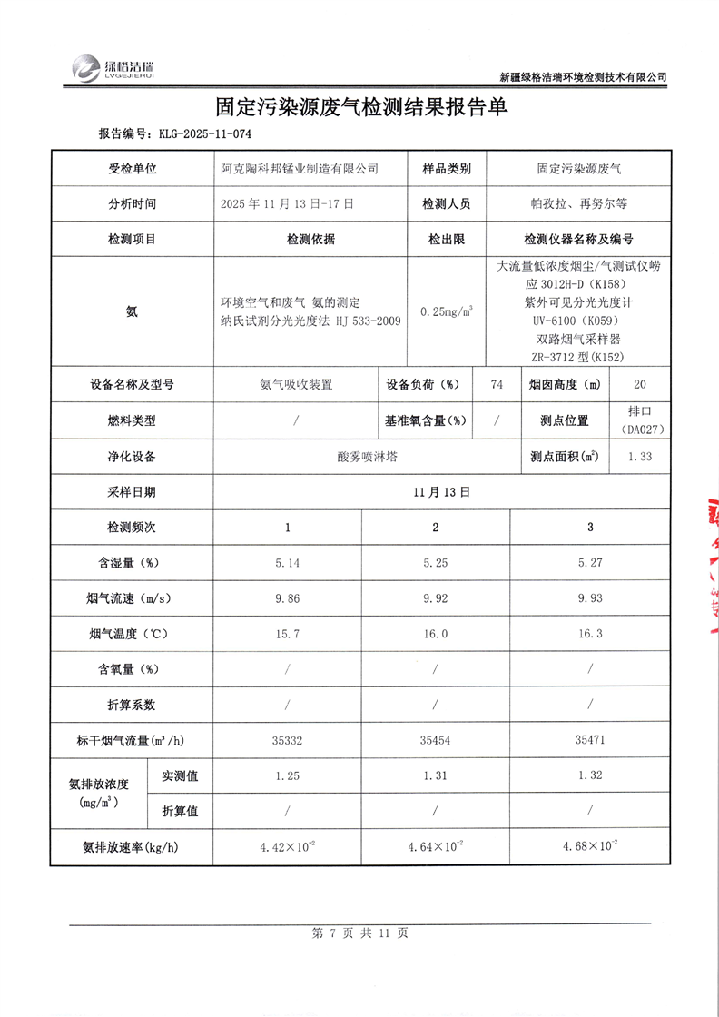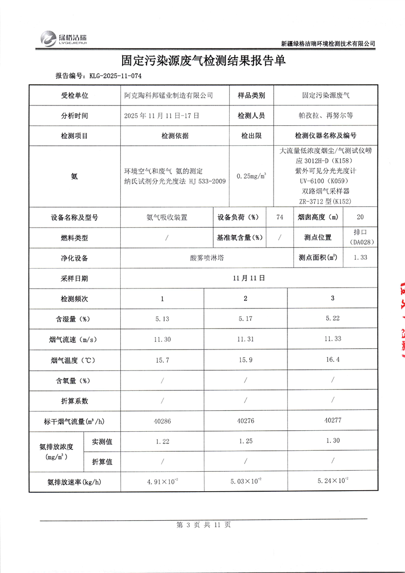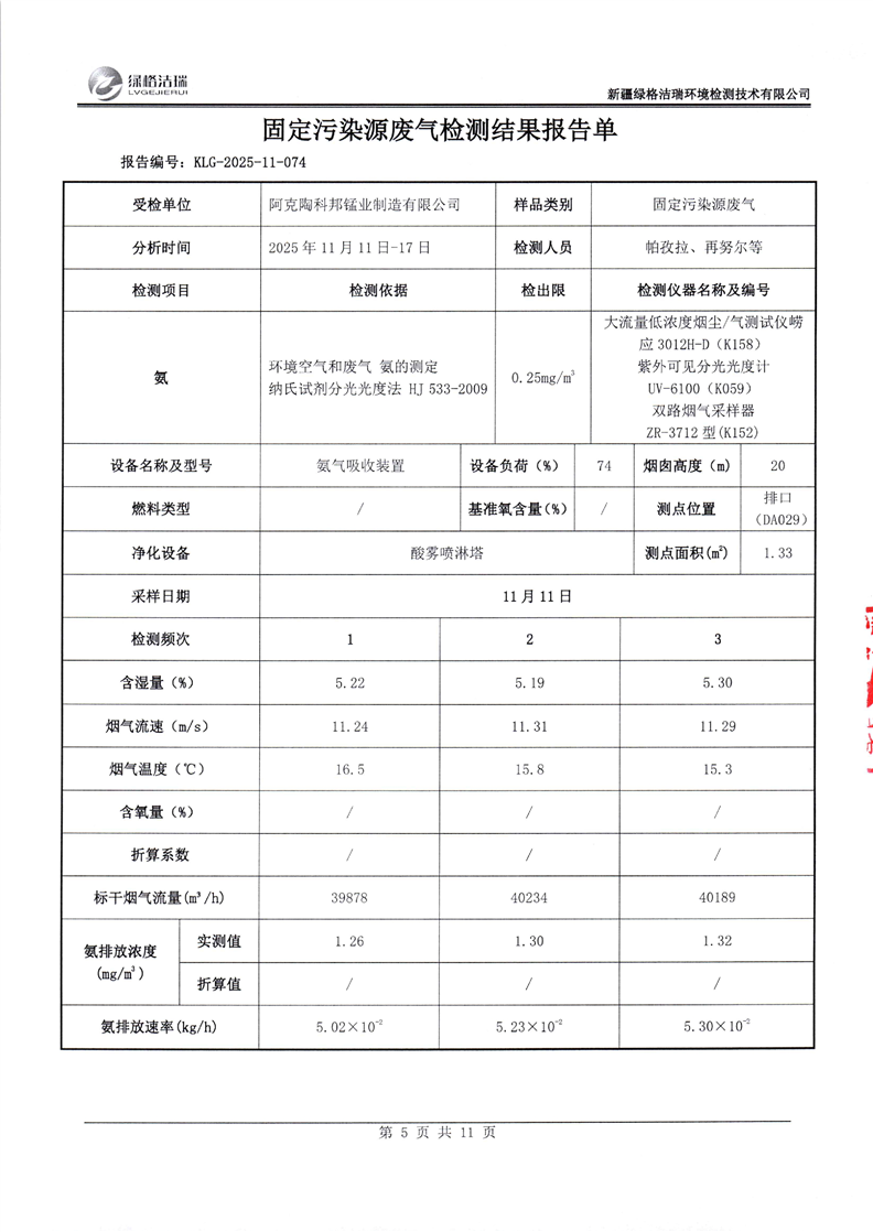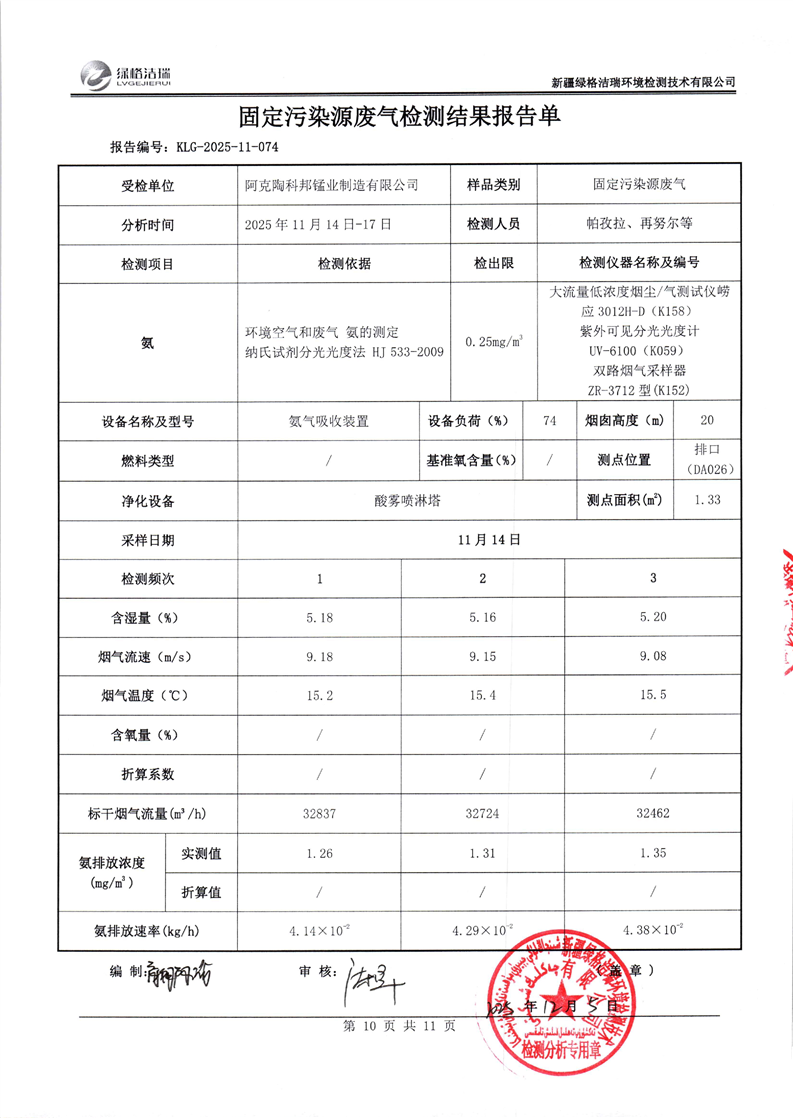 科邦锰业环境检测2025年11月污水噪声废气检测报告
