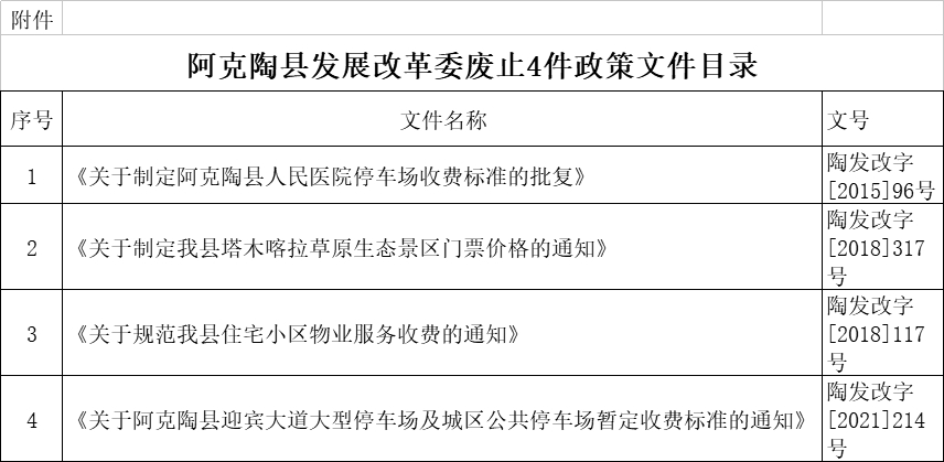 附件:阿克陶县发展改革委废止4件政策文件目录
