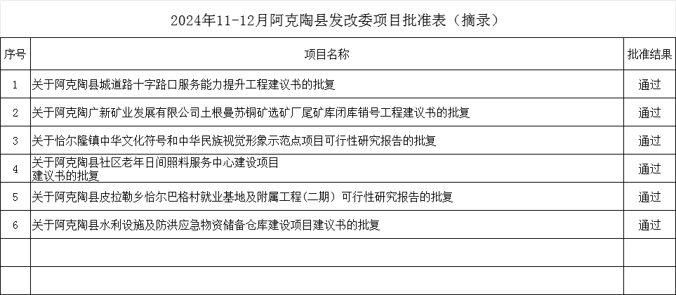 2024年11-12月阿克陶县发改委项目批准表(摘录)