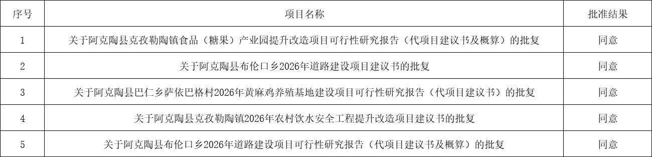 2026年3月阿克陶县发改委项目批准表(摘录)