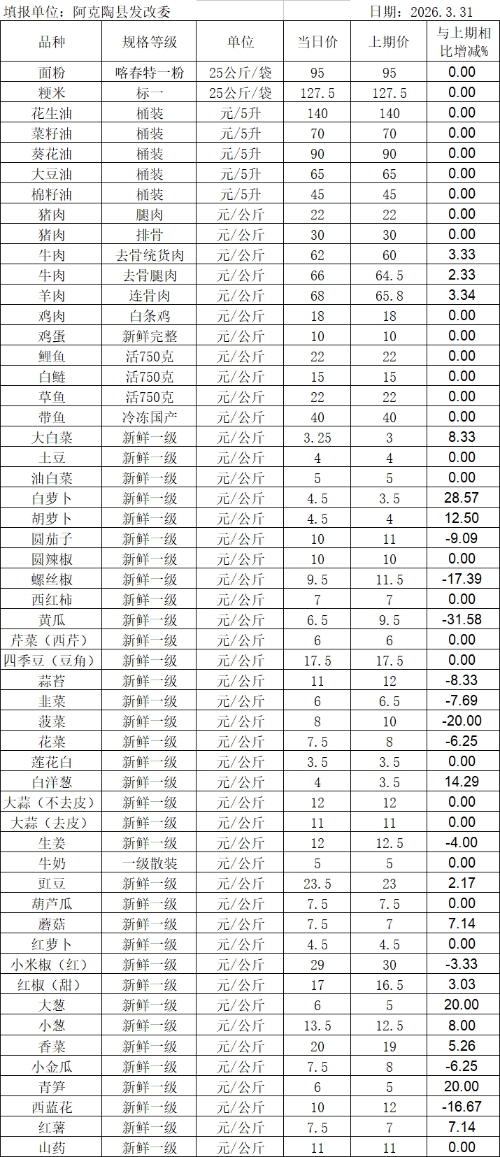 | 主 题 词 | 价格监测 | 成文日期 | 2026-03-31 10:53 |