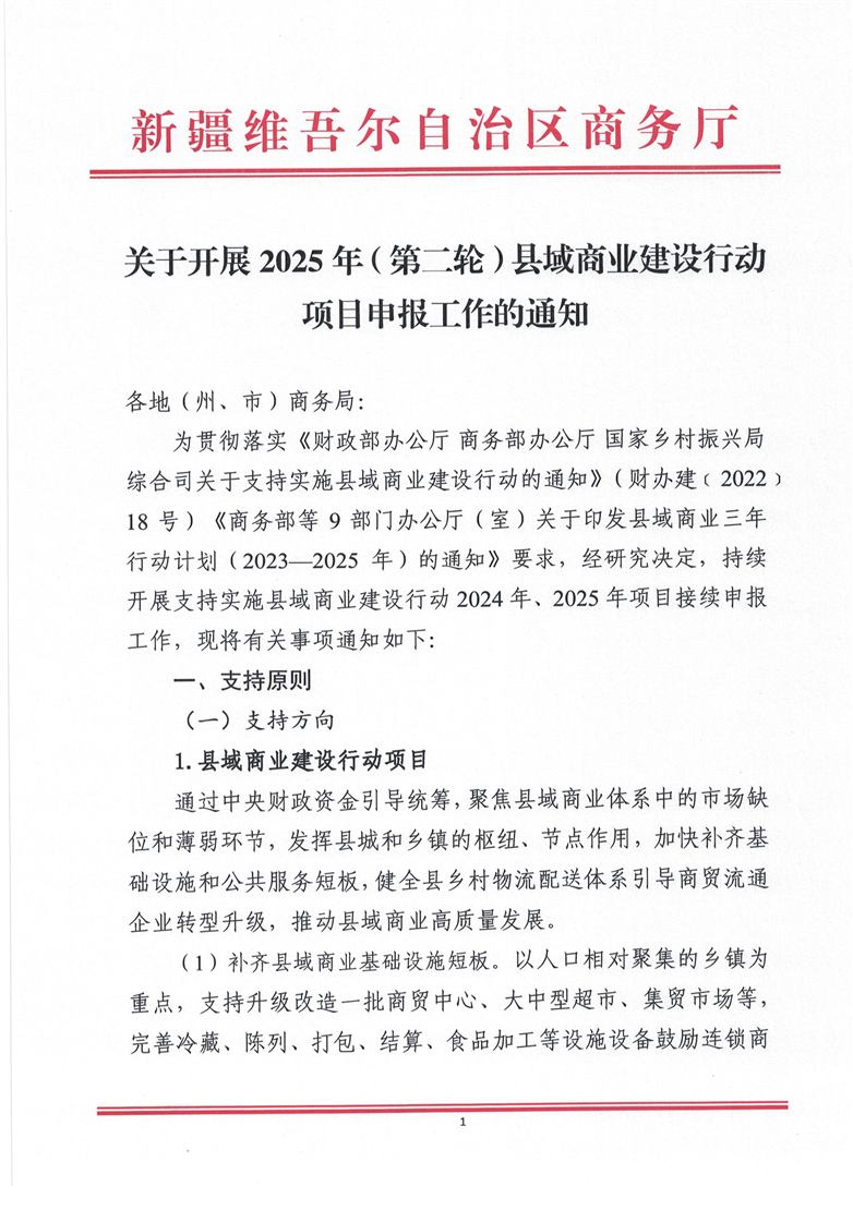 关于开展2025年(第二轮)县域商业建设行动项目申报工作的通知