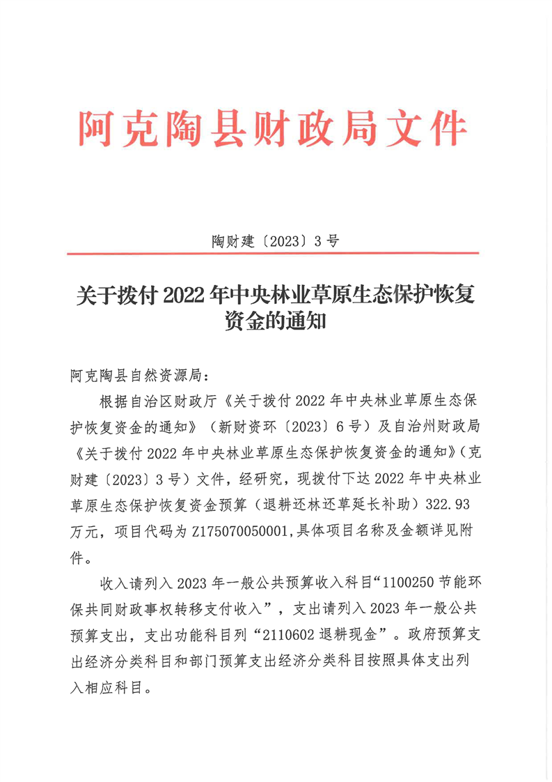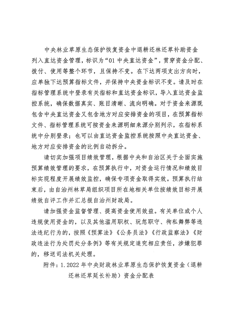 关于拨付2022年中央林业草原生态保护恢复资金的通知