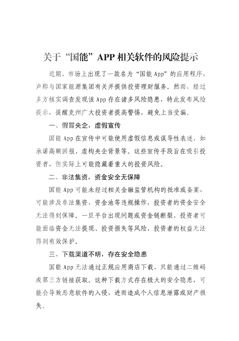 关于国能APP相关软件风险提示