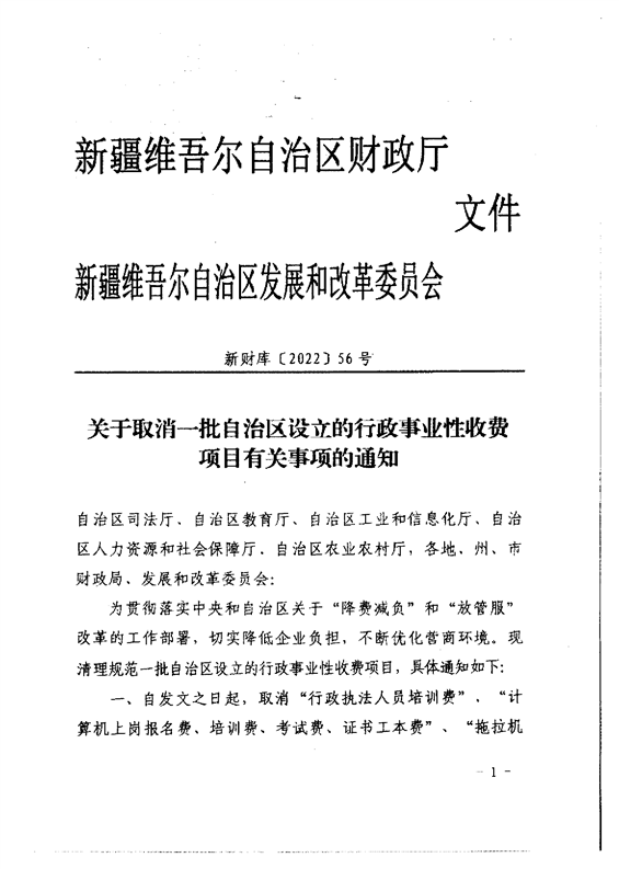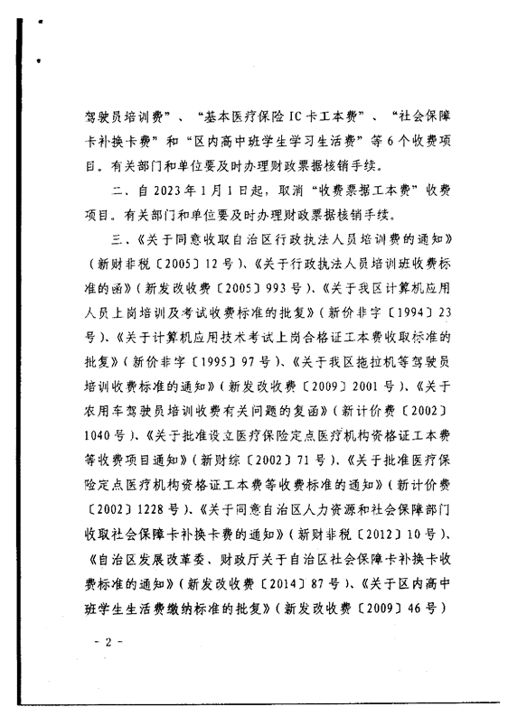 关于取消一批自治区设立的行政事业性收费项目有关事项的通知