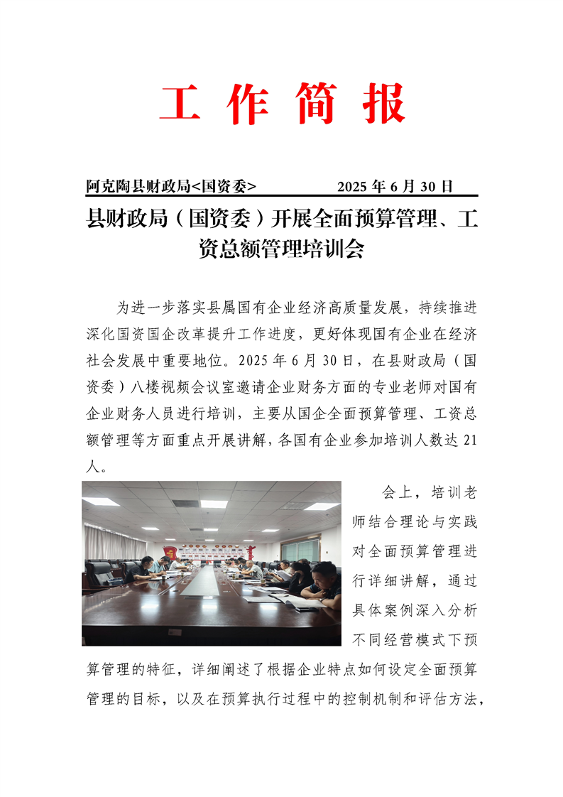阿克陶县财政局(国资委)开展全面预算管理、工资总额管理培训会