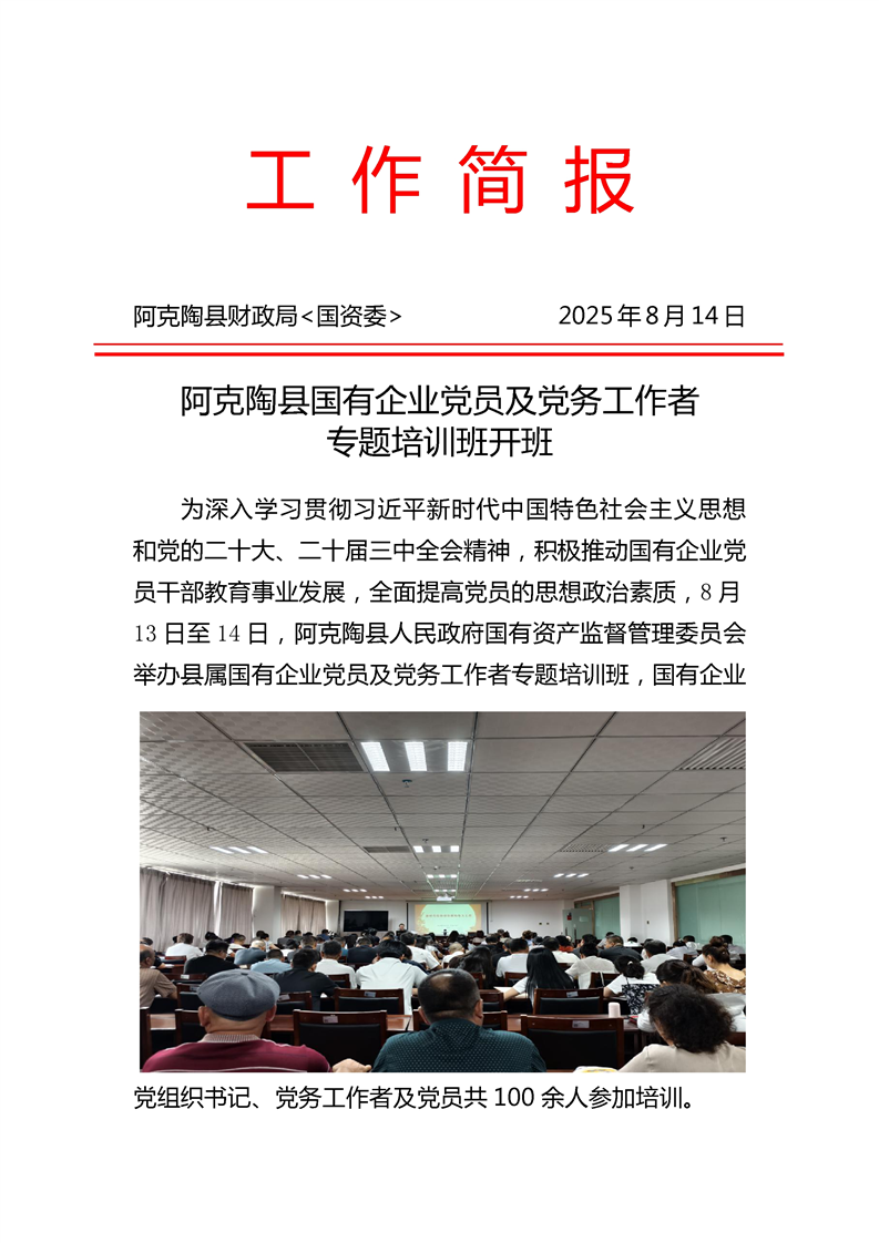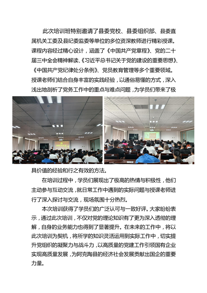 阿克陶县国有企业党员及党务工作者专题培训班开班