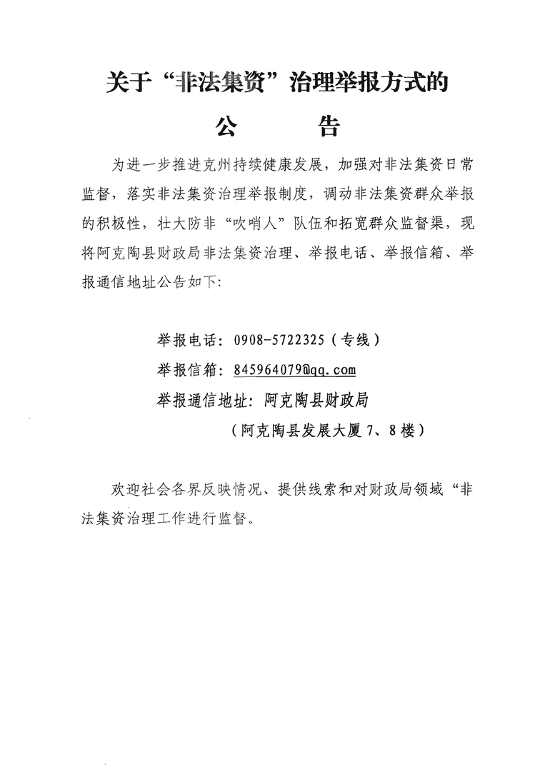 关于“非法集资”治理举报方式的公告