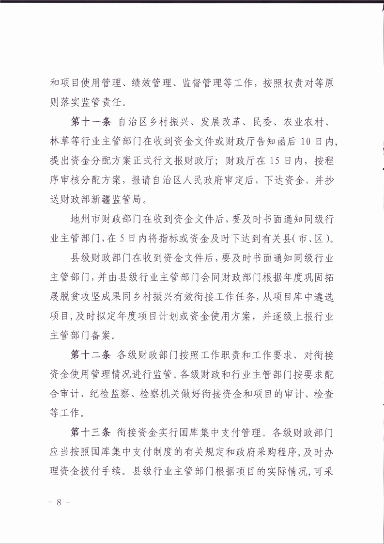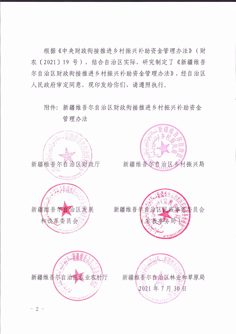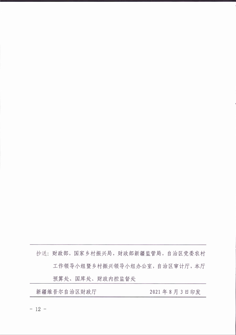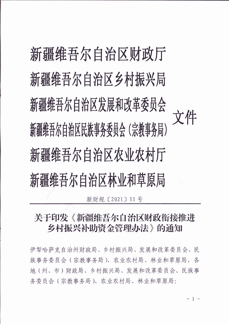 关于印发《新疆维吾尔自治区财政衔接推进乡村振兴补助资金管理办法》的通知
