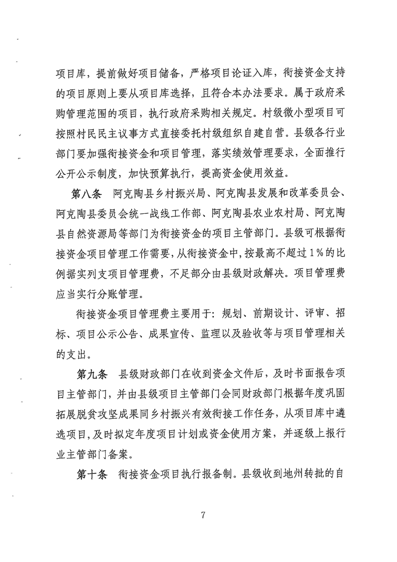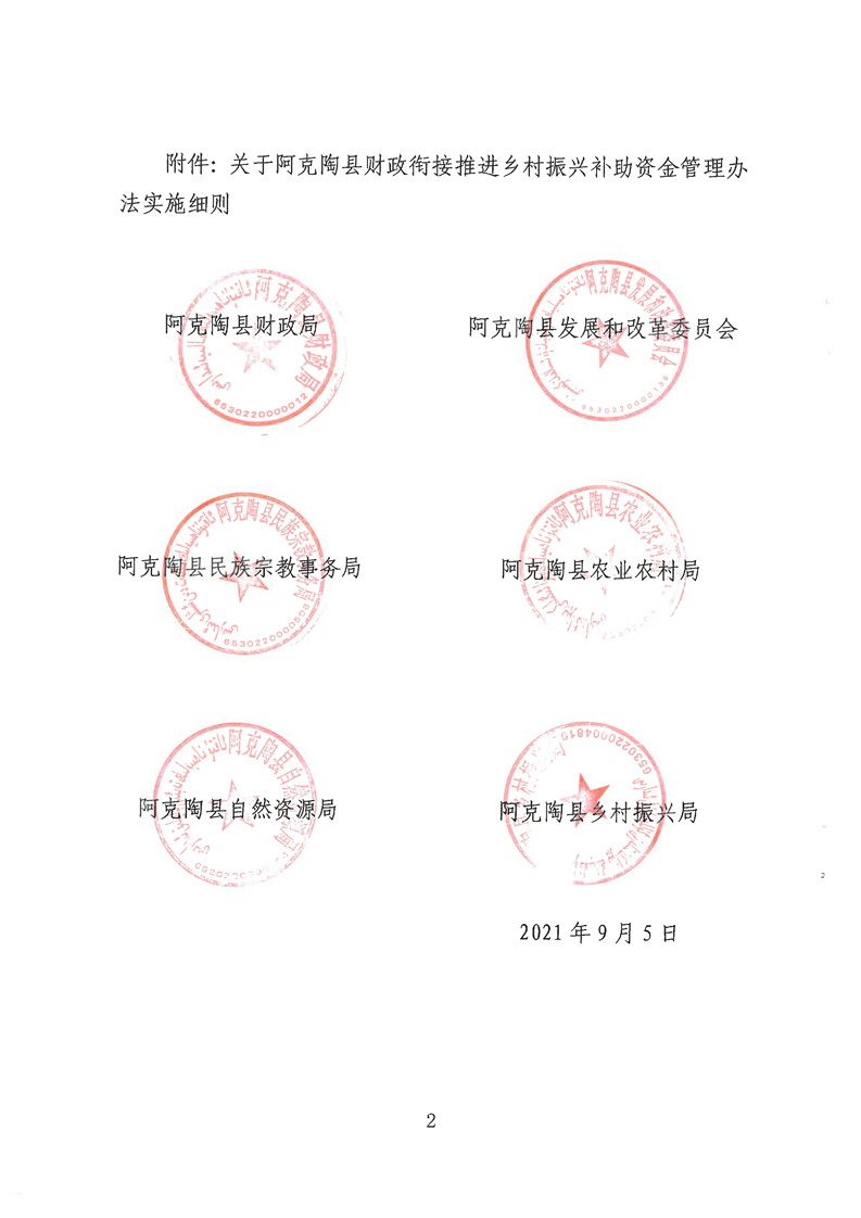 关于《阿克陶县财政衔接推进乡村振兴补助资金管理办法实施细则》的公开公示