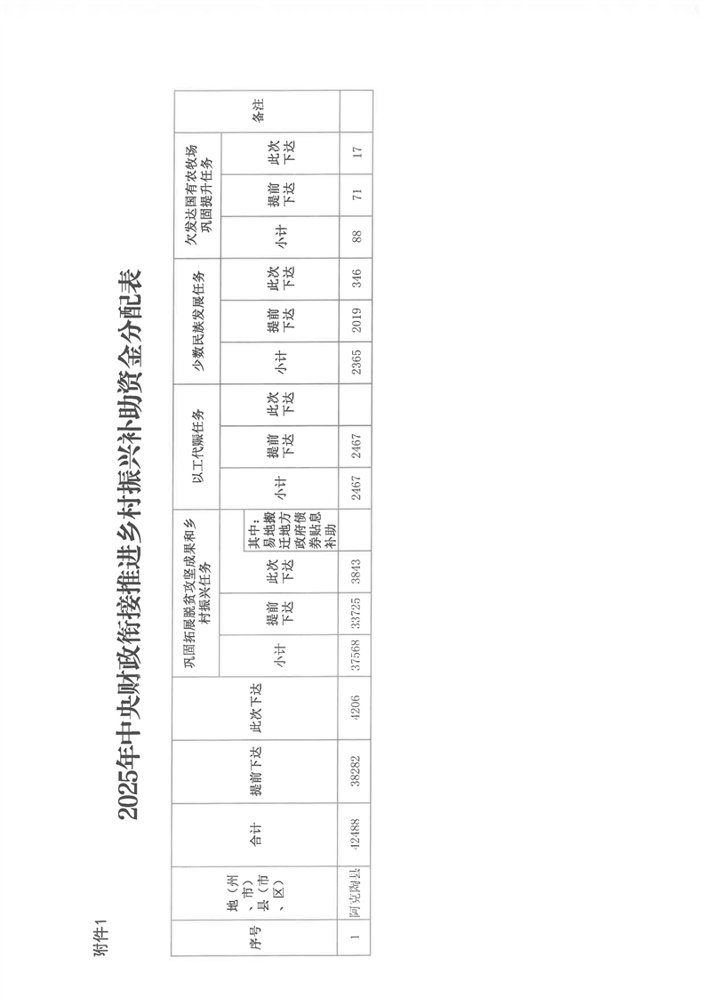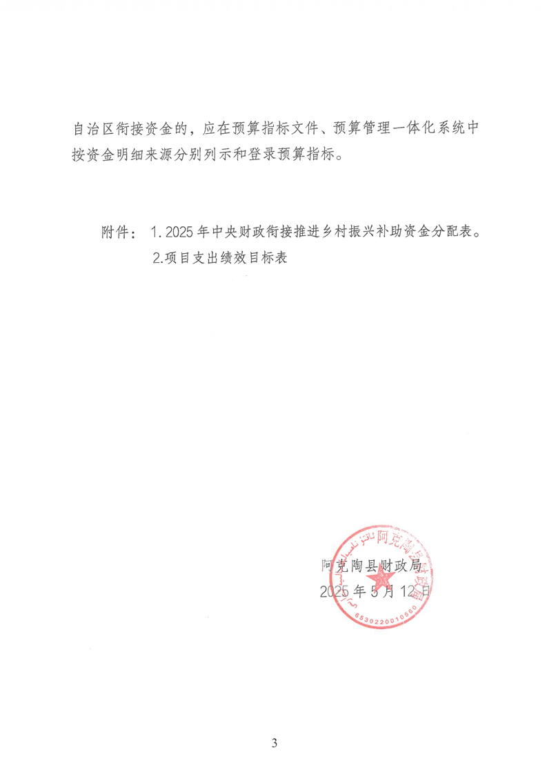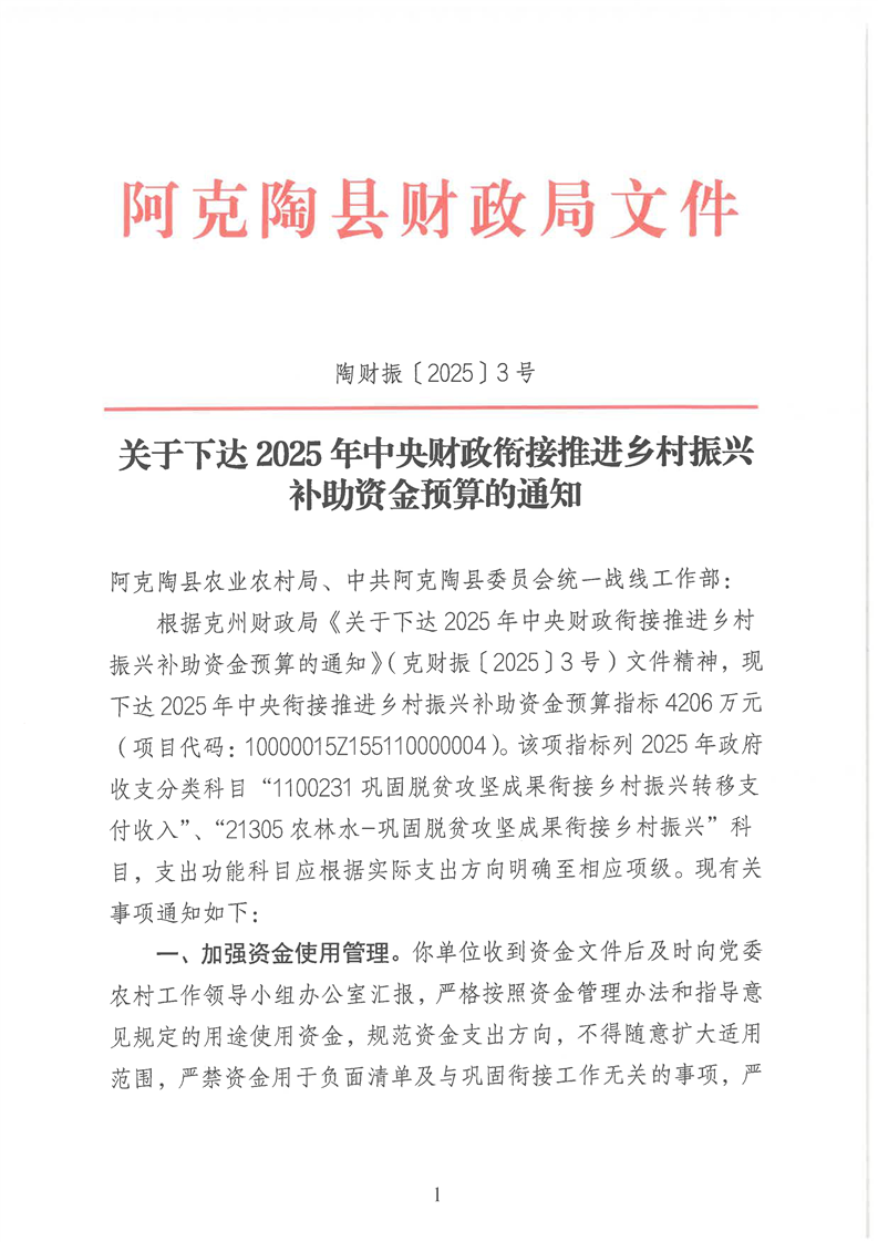 关于下达2025年中央财政衔接推进乡村振兴补助资金预算的通知