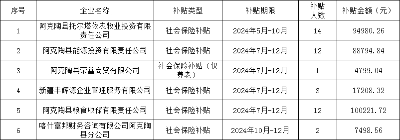 为进一步发挥就业补贴政策在减负、稳岗、促就业方面的作用,经审核,同意以下企业社会保险补贴申请。现将拟享受补贴的具体企业名单及补贴金额进行公示,公示期为7天(2025年3月10日-3月16日)。欢迎社会各界监督,接受实名举报。