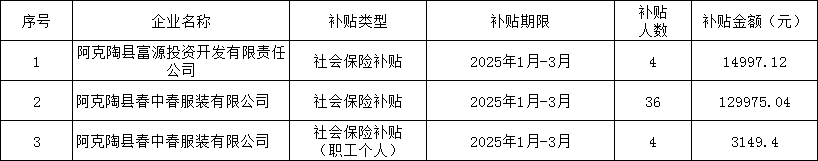 为进一步发挥各项就业补贴政策在减负、稳岗、促就业方面的作用,经审核,同意以下纺织服装企业社保补贴申请。现将拟享受补贴的具体企业名单及补贴金额进行公示,公示期为7天(2025年7月7日-7月13日)。欢迎社会各界监督,接受实名举报。