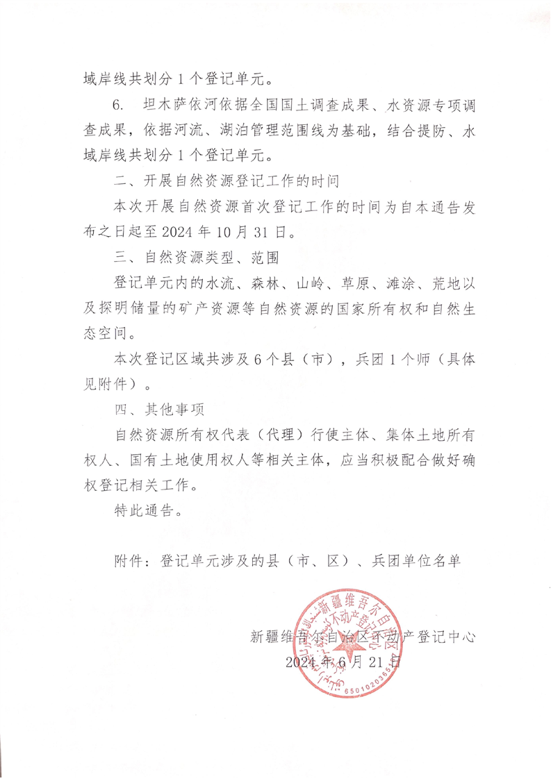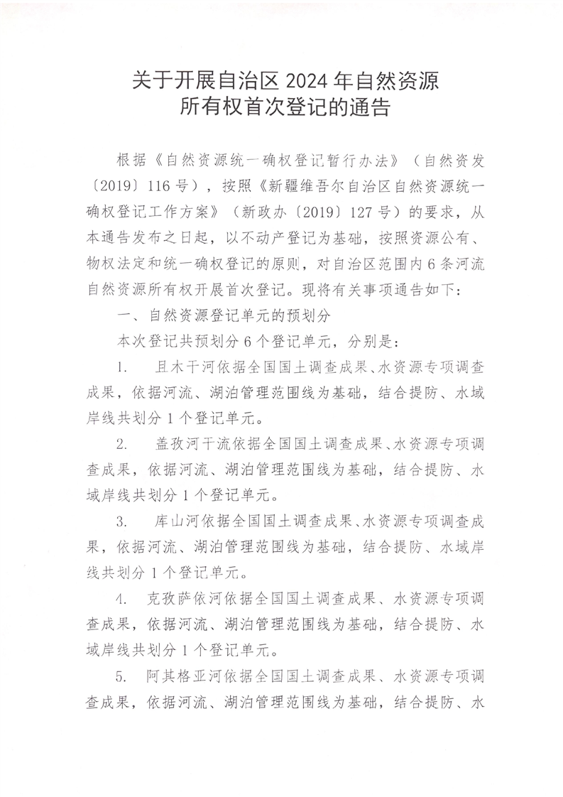 关于开展自治区2024年自然资源所有权首次登记的通告