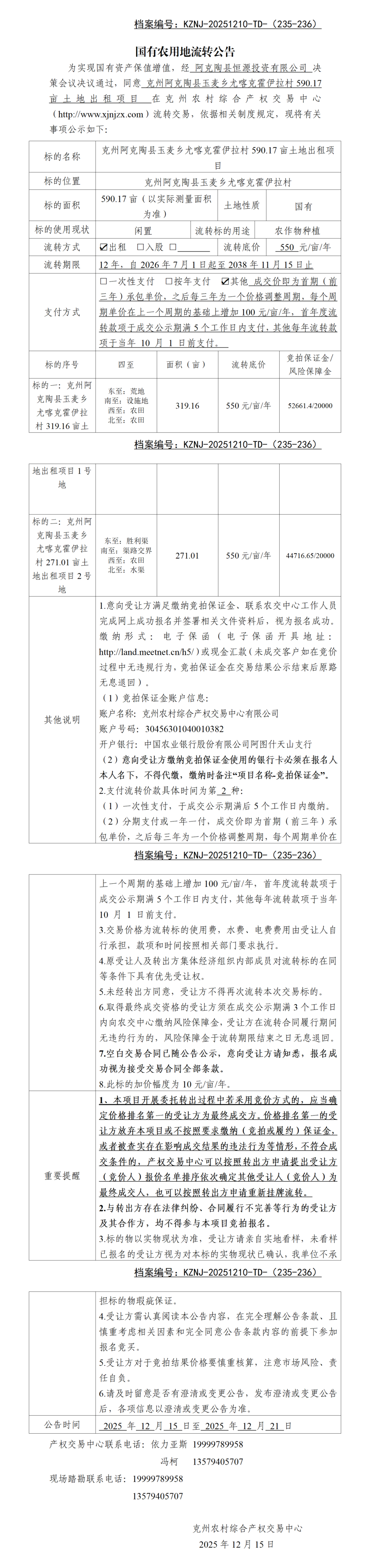 克州阿克陶县玉麦乡尤喀克霍伊拉村590.17亩土地出租项目流转公告