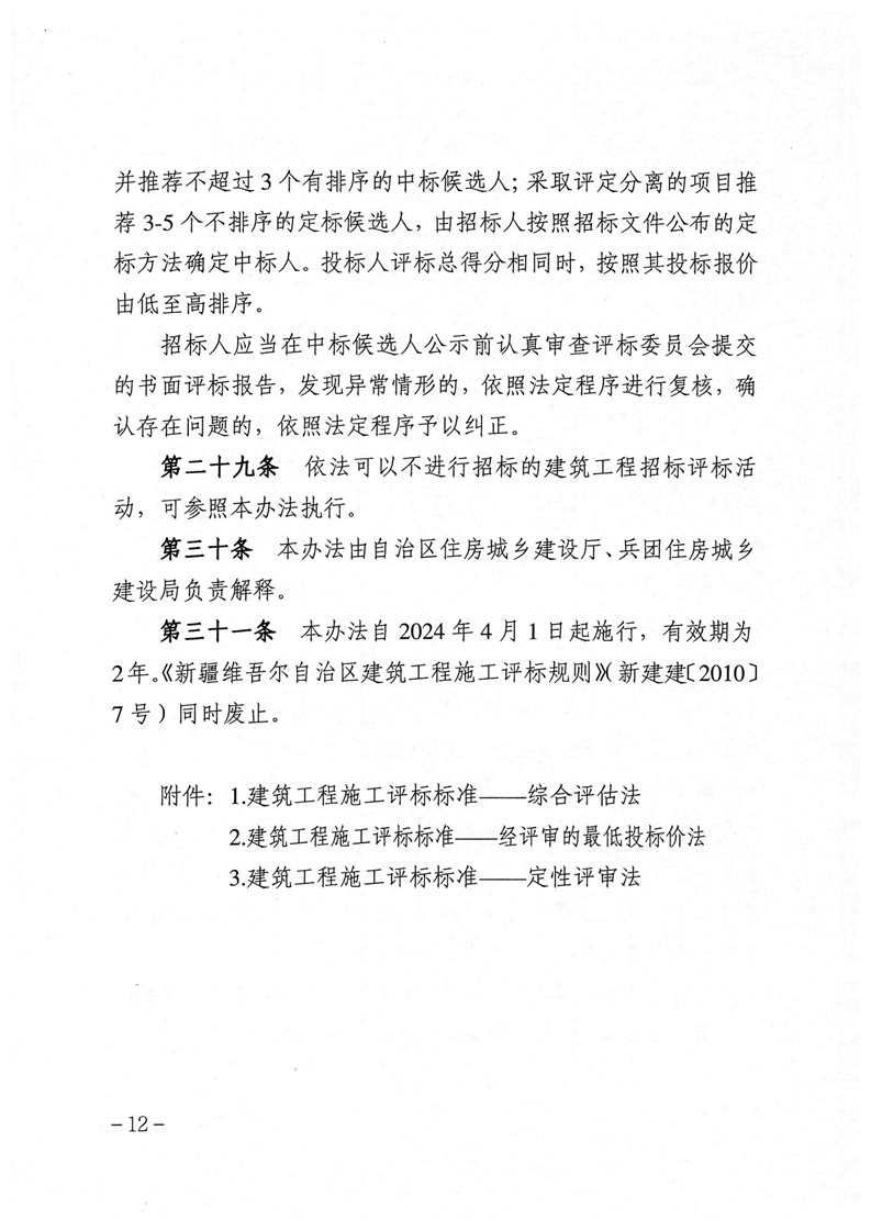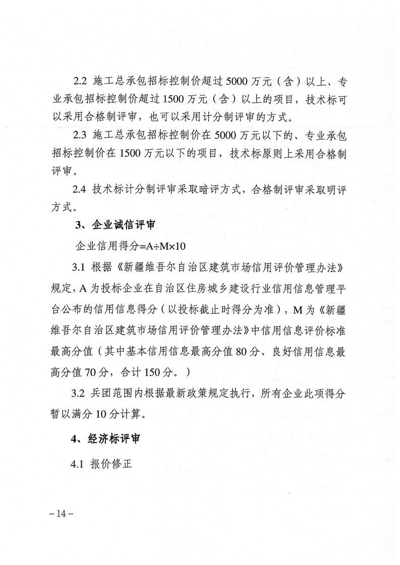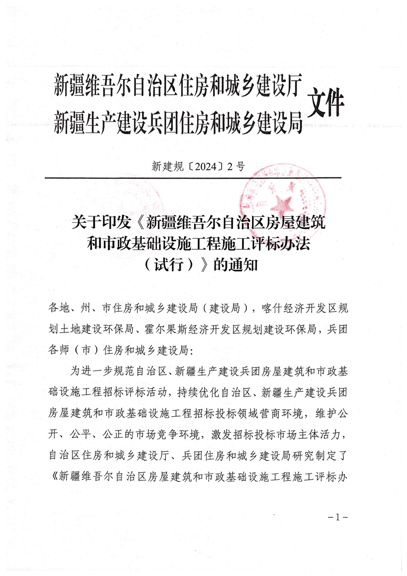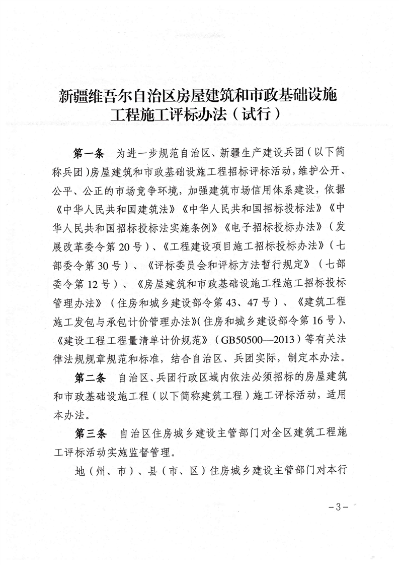 关于印发《新疆维吾尔自治区房屋建筑和市政基础设施工程施工评标办法(试行)》的通知