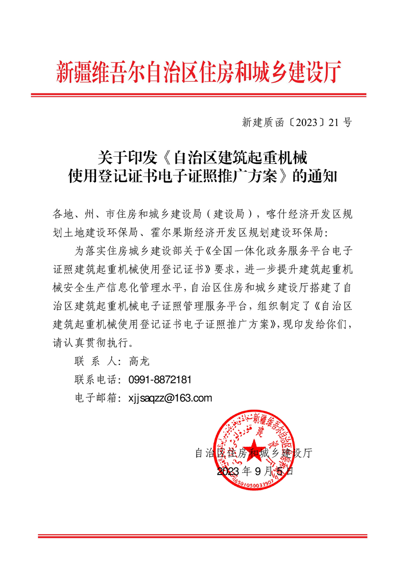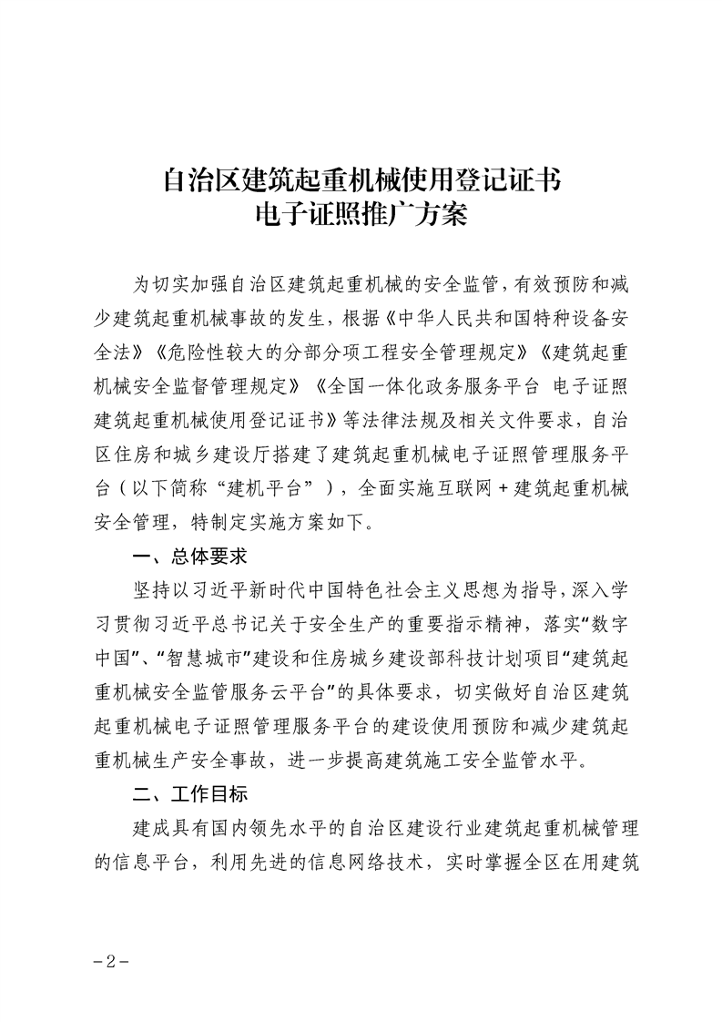 关于印发《自治区建筑起重机械使用登记证书电子证照推广方案》的通知