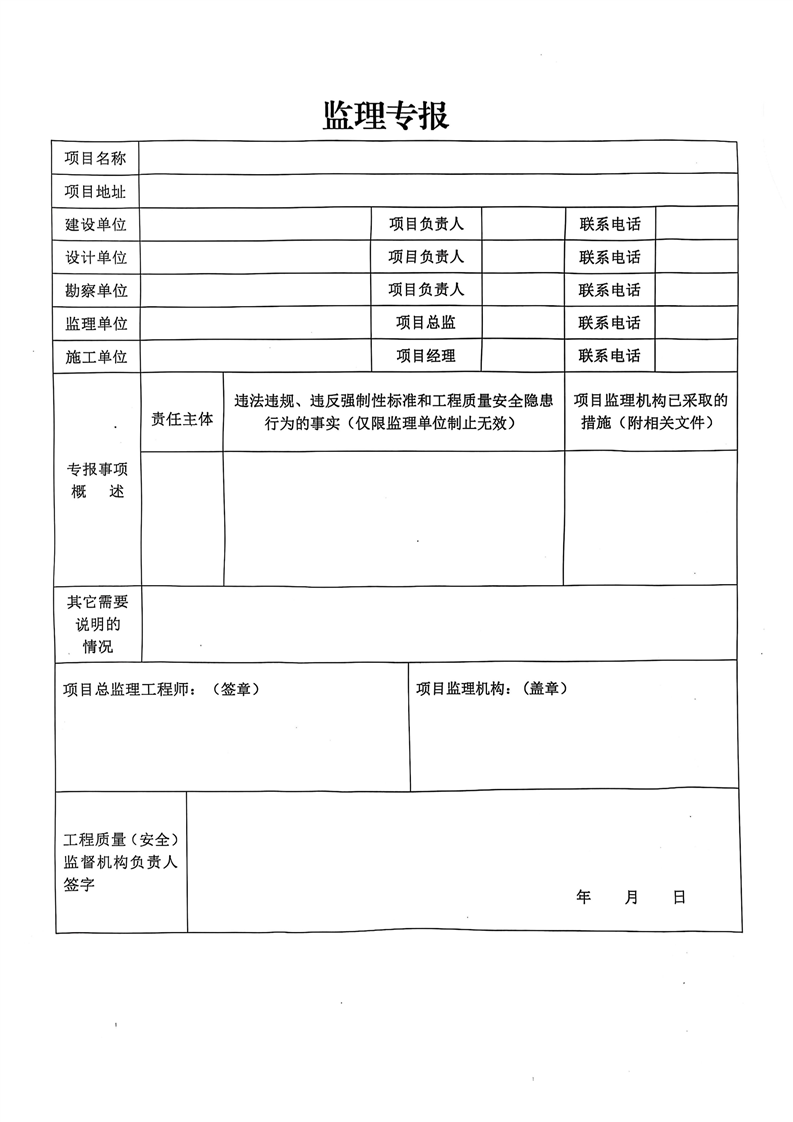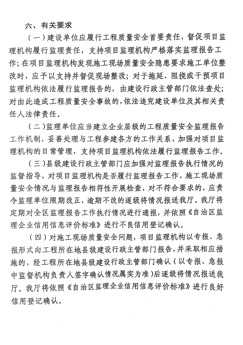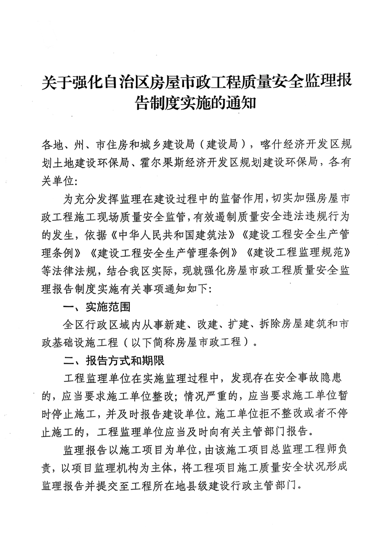 关于强化自治区房屋市政工程质量安全监理报告制度的通知