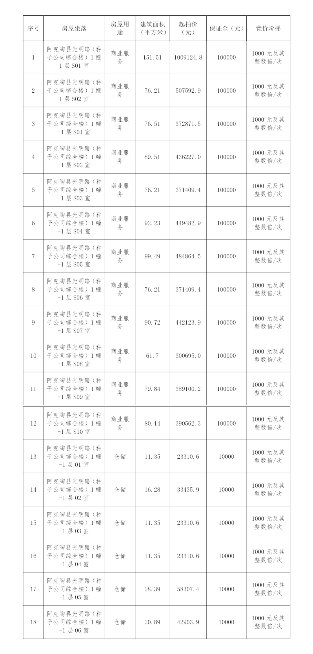 接受委托,我公司将对新疆克州阿克陶县以下房屋产权进行公开拍卖: