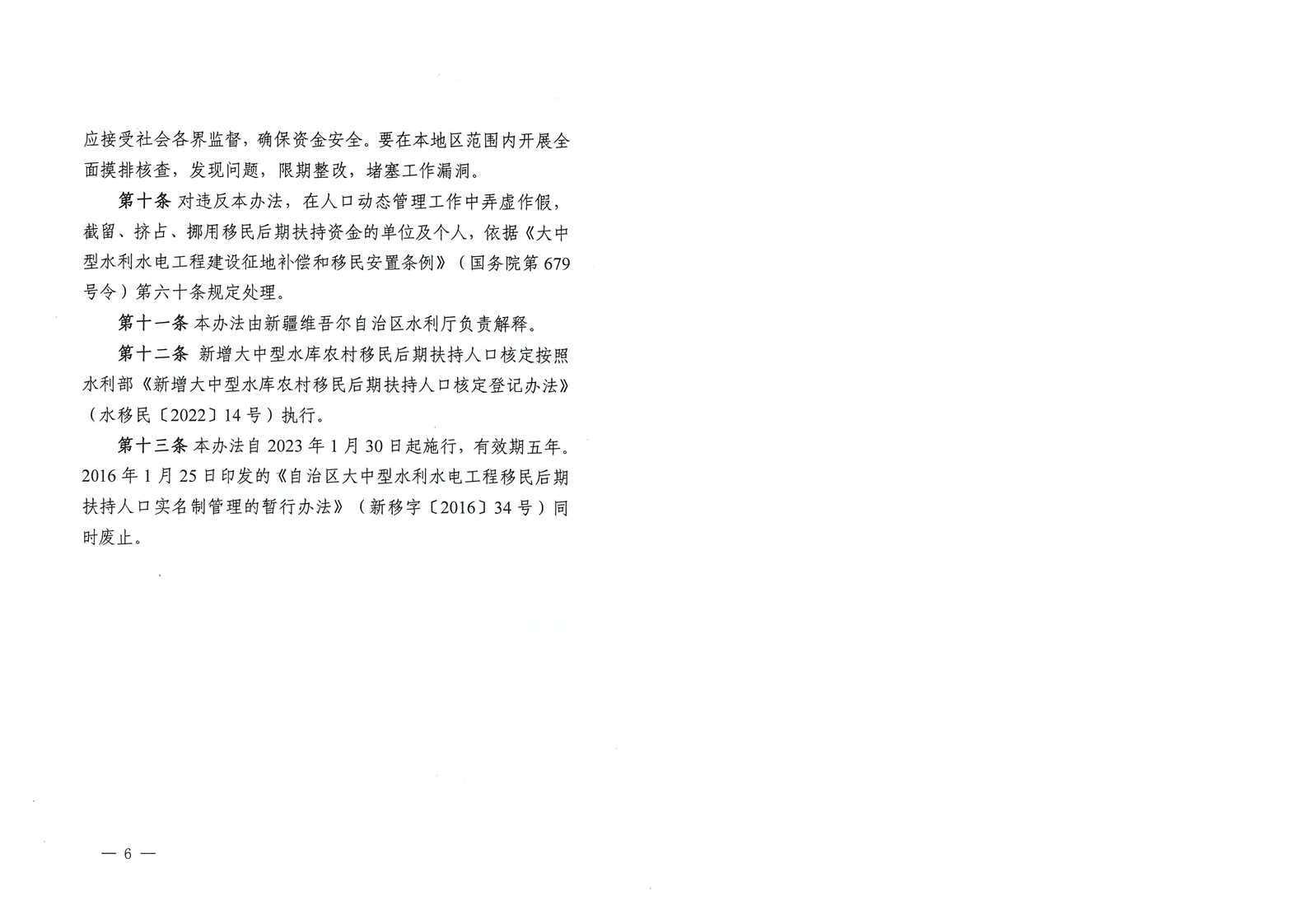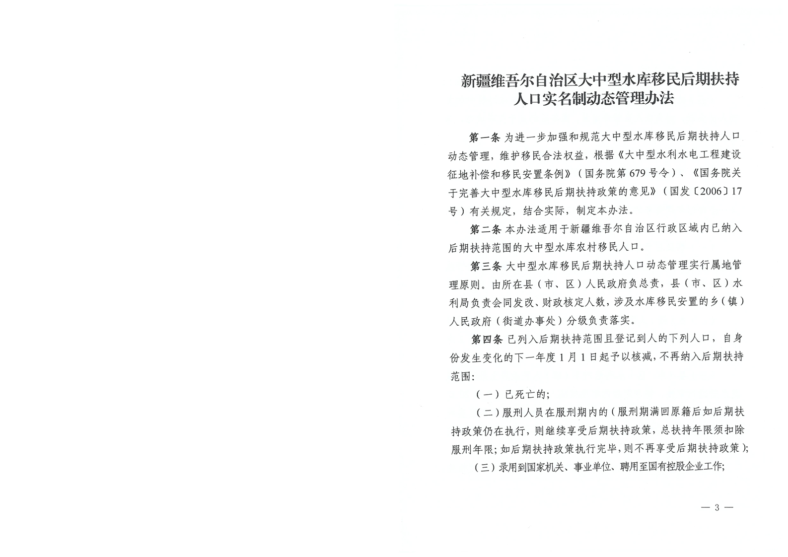 《新疆维吾尔自治区大中型水库移民后期扶持人口实名制动态管理办法》