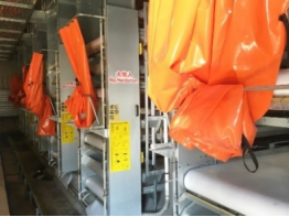 鸡舍应以单列平行排列为主,净污分区,鸡场采用整场全进全出工艺,或至少实施分区布局按区全进全出。鸡舍采用纵向通风,为防止排风粉尘在舍间交叉传播,排气风机应全部集中安装在处于场区下风向的鸡舍一端的山墙上,排风端山墙后需配置除尘间,并对舍内排出空气中的羽毛粉尘颗粒物等进行处理。
