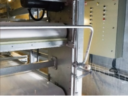 应采用传送带式清粪系统,包括纵向、横向、斜向清粪传送带、动力和控制系统(图5)。每层笼底均应配备传送带分层清理,由纵向传送带输送到鸡舍尾端,各层笼底传送带粪便经尾端刮板刮落后落入底部横向传送带,再经横向和斜向传送带输送至舍外,保证“粪不落地”,适当提高清粪频率,建议粪便日产日清。清粪传送带宜采用全新聚丙烯材料,具备防静电、抗老化、防跑偏功能。为避免鸡只接触清粪传送带粪便,应在每层笼上方设置顶网。