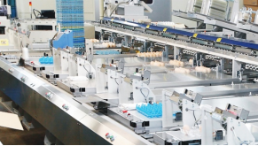 应采用自动化集蛋系统,包括集蛋带、集蛋机、中央输蛋线、蛋库和鸡蛋分级包装机(图6)。集蛋过程应将各层鸡蛋自动传送到鸡笼头架,进而通过中央集蛋线将鸡蛋从鸡舍集中传送到蛋库进行后续包装。包装过程应采用鸡蛋分级包装机进行自动鸡蛋分级、装盘,鸡蛋分级包装机效率需根据场区实际生产情况进行配置,通常处理速度为3-18万枚/小时。蛋带应采用PP5以上级别的高韧性全新聚丙烯材料。